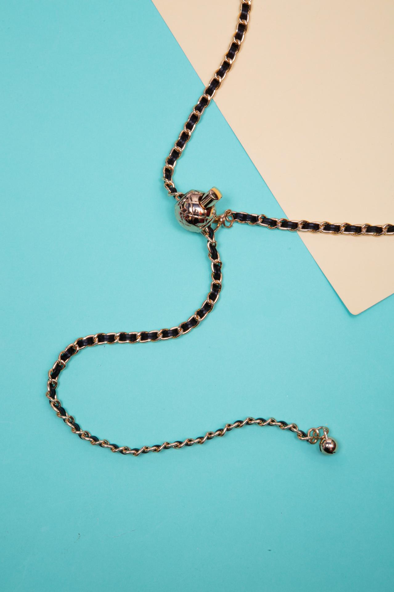 A stainless steel chain belt with a woven strap and a silver disco charm. Crafted using upcycled and recycled materials, this belt reflects MiniMe Paris’s commitment to creativity and conscious fashion.