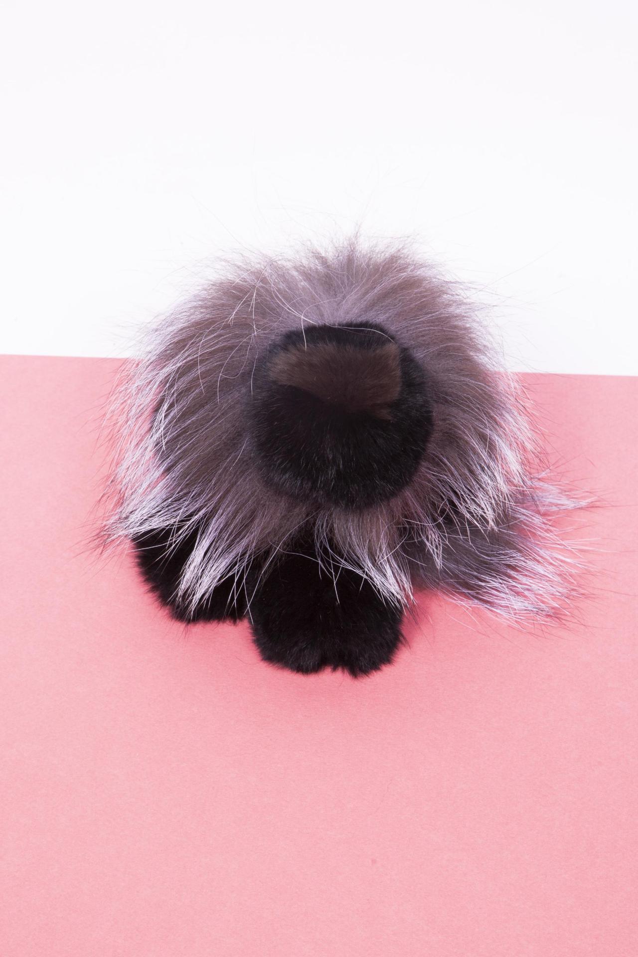 A fluffy black lion keychain with a smoky grey mane and ultra-soft fur.
