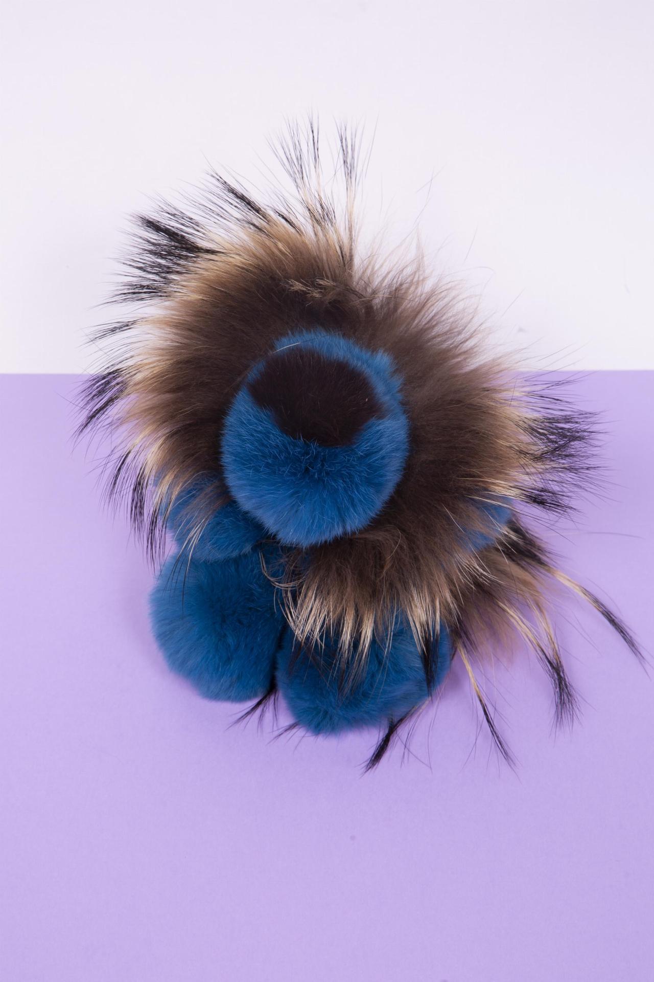 A fluffy blue lion keychain with a soft plush body and a dramatic two-tone mane.