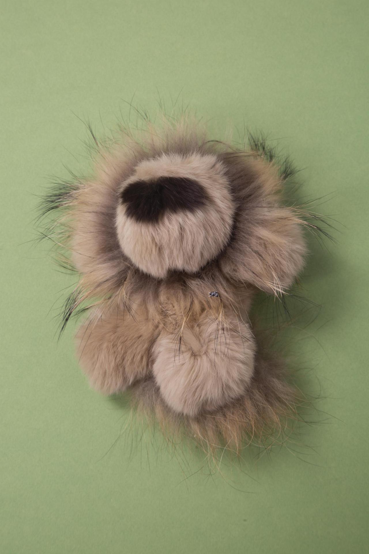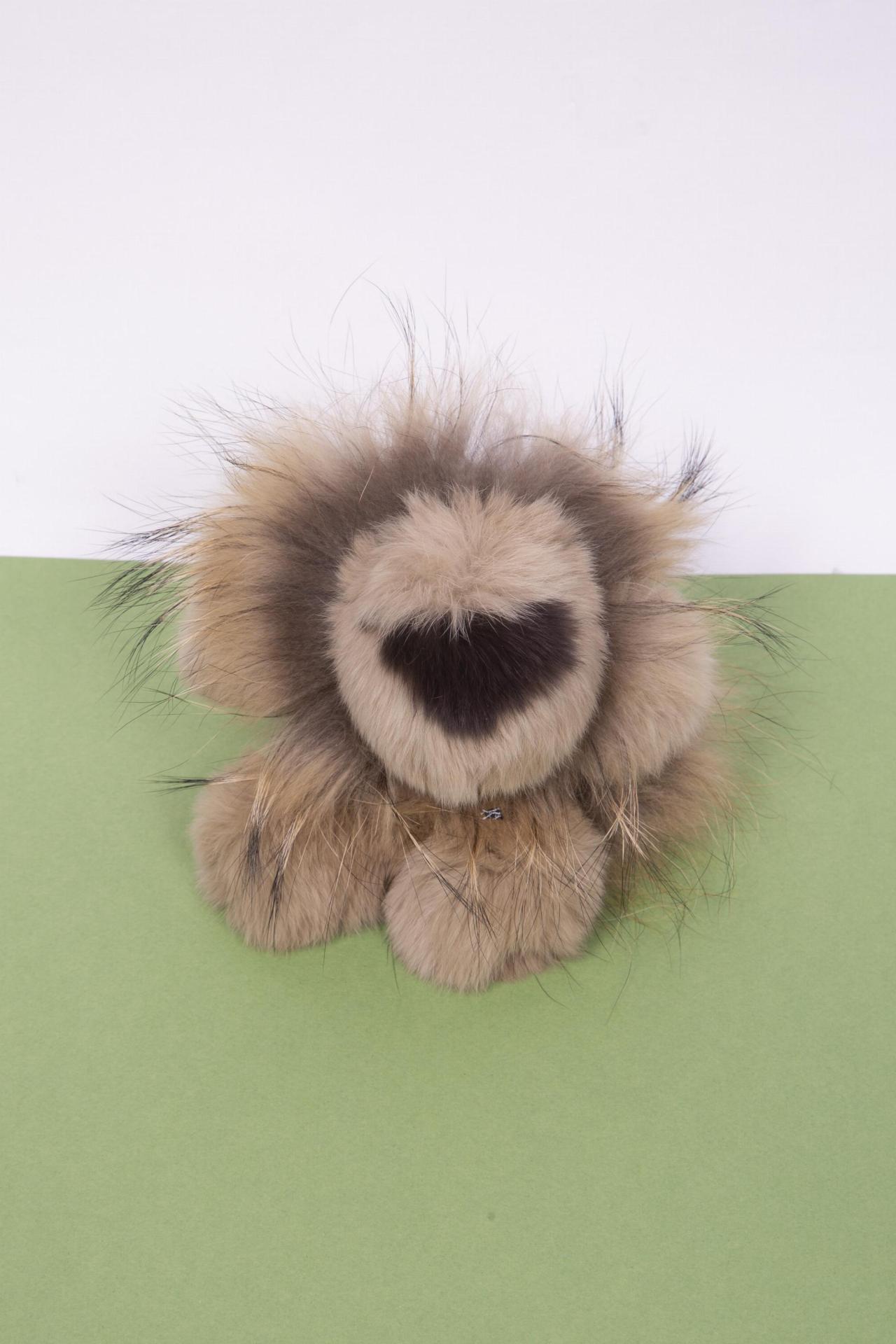 A beige fluffy lion keychain with a soft fur mane and plush body.
