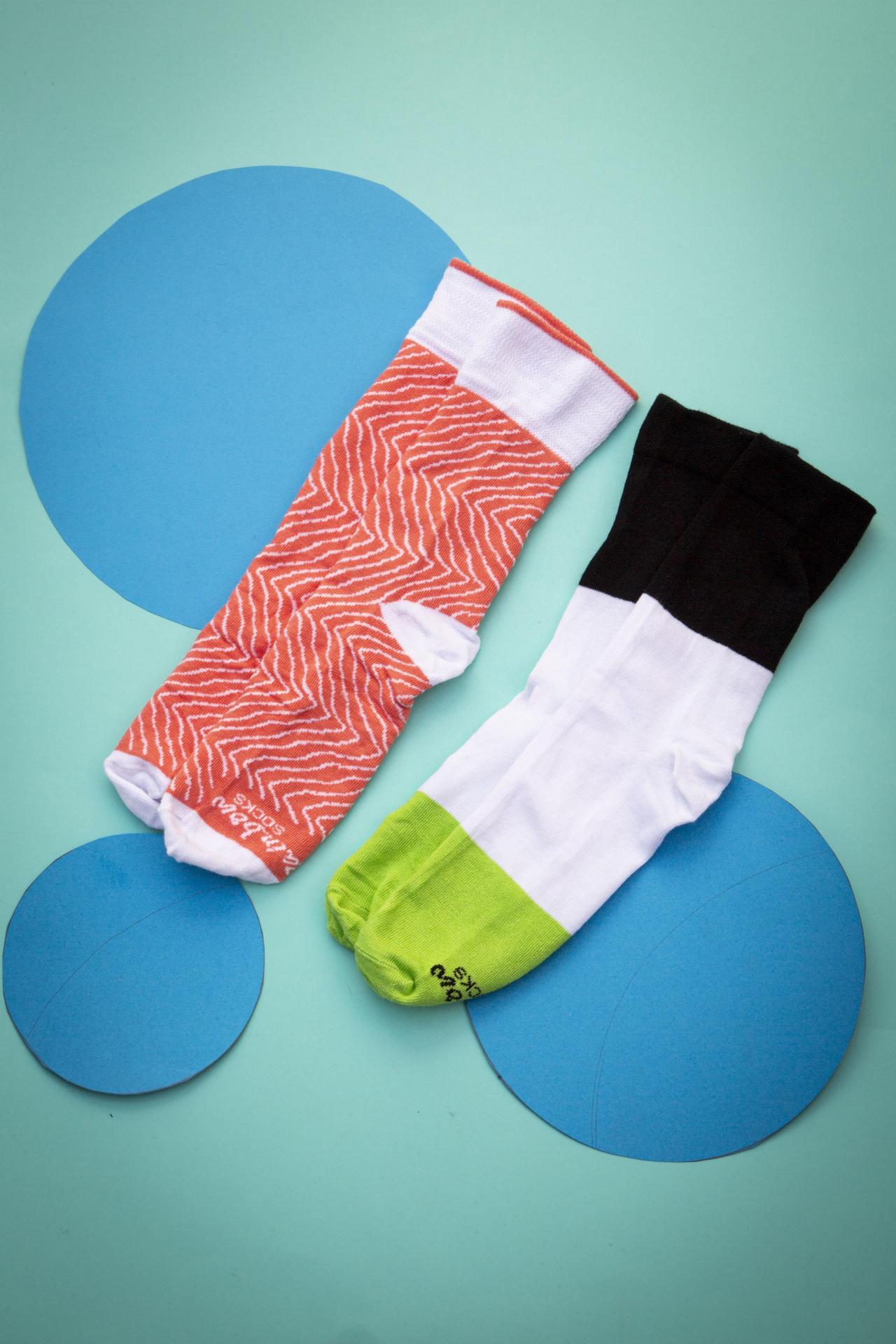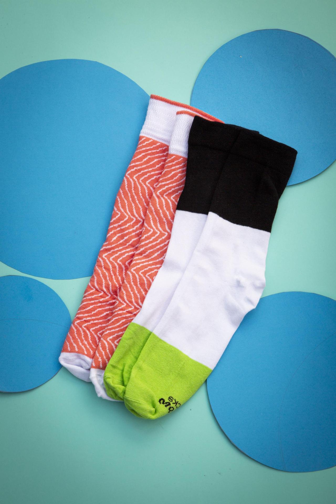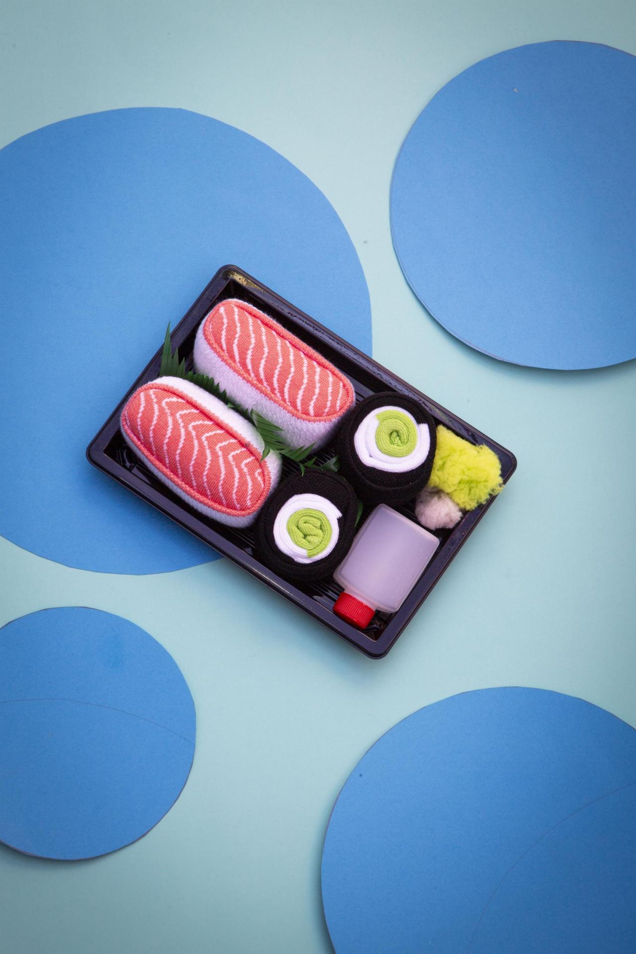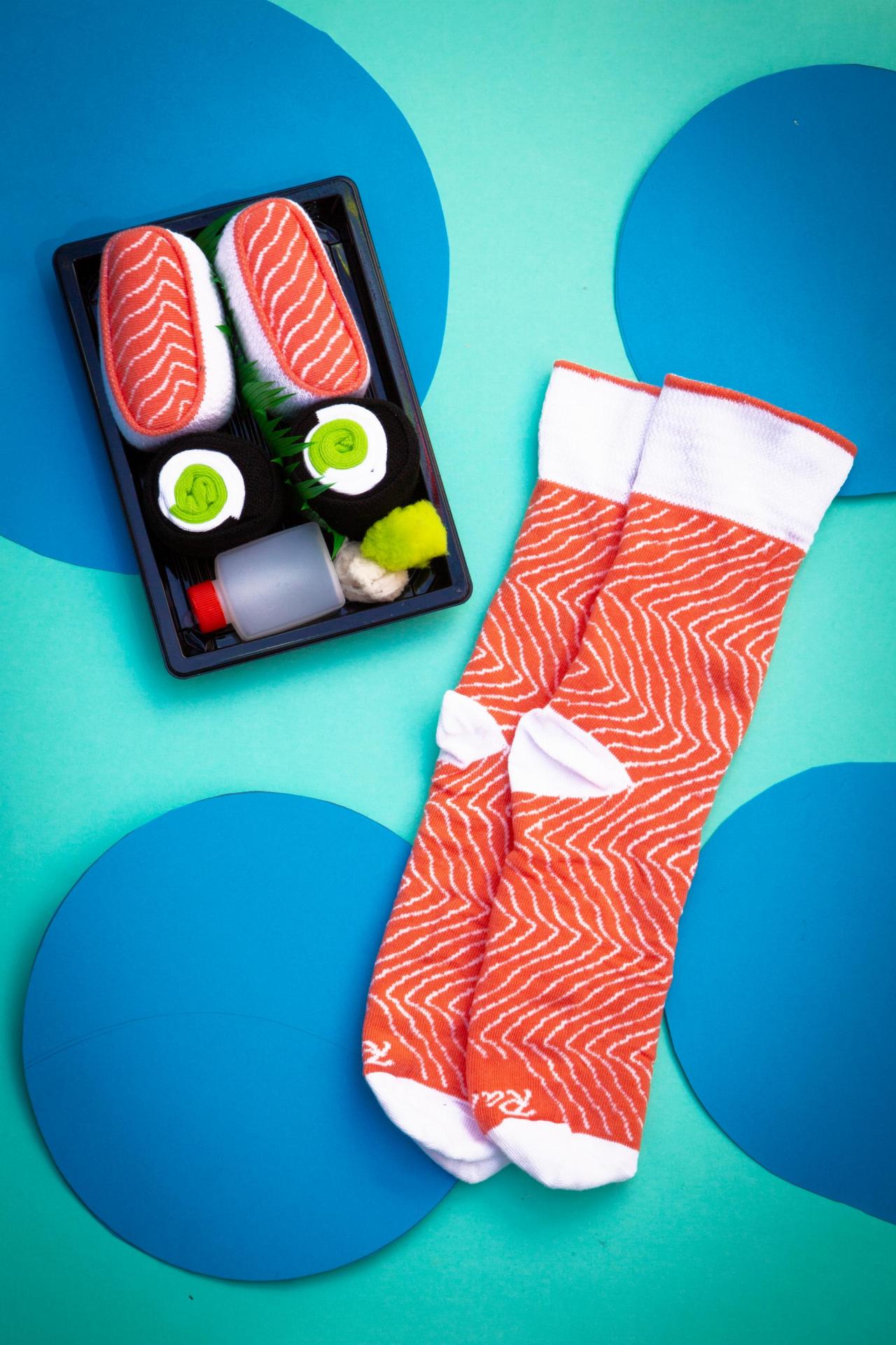 Socks shaped like salmon nigiri and maki, cute and colorful.