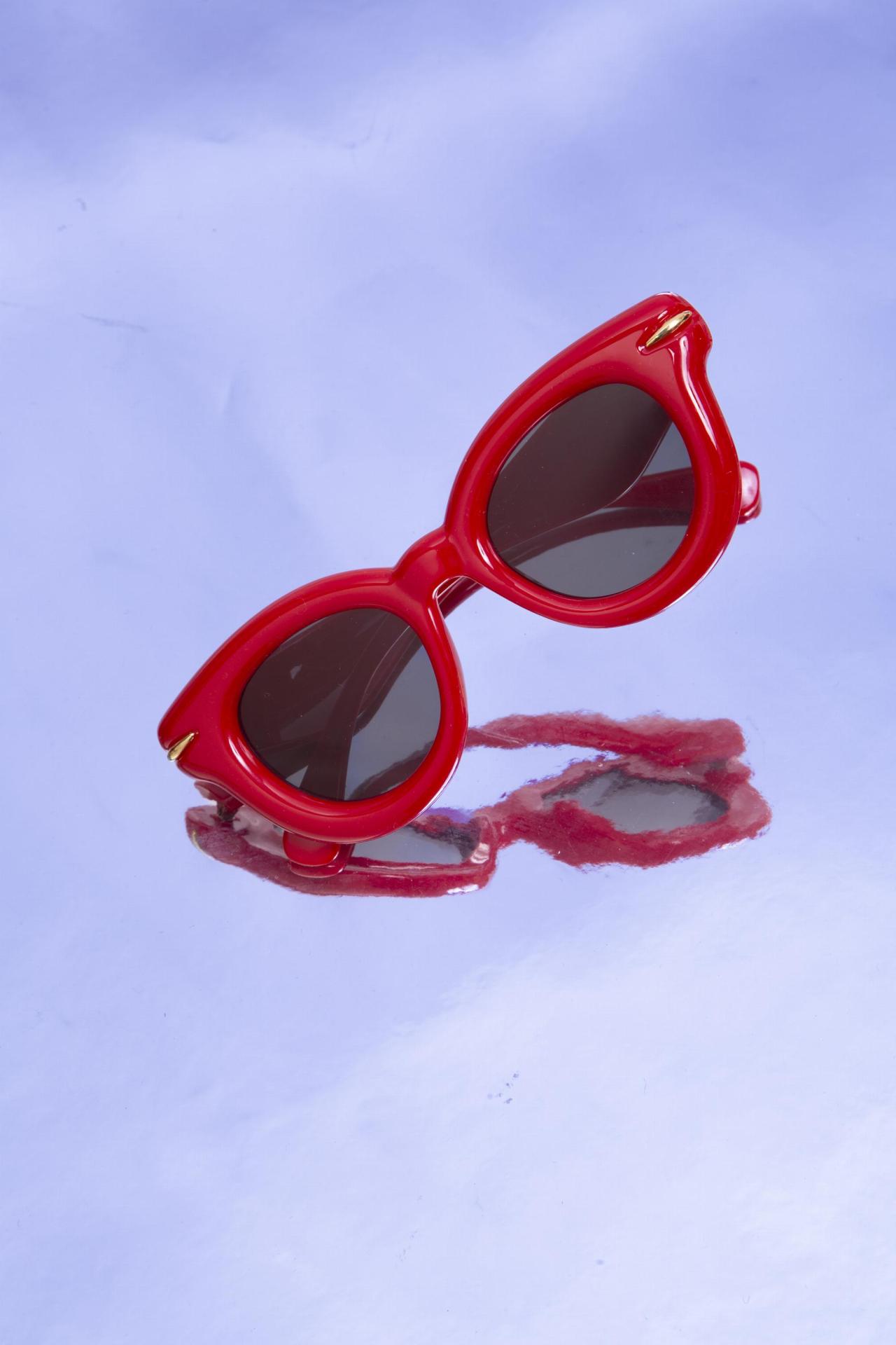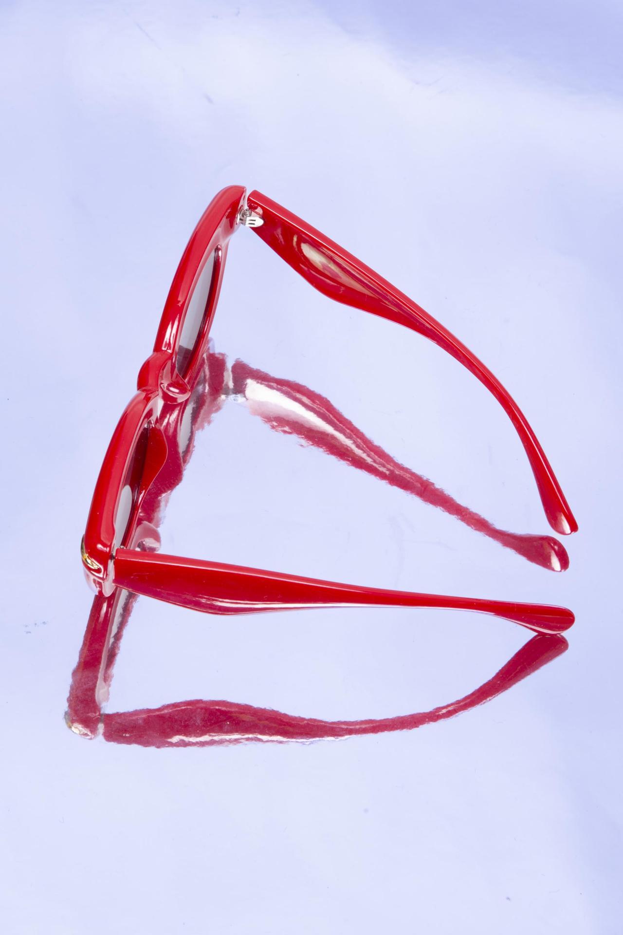 A pair of bold red cat eye sunglasses with sleek gold details for a playful chic look.