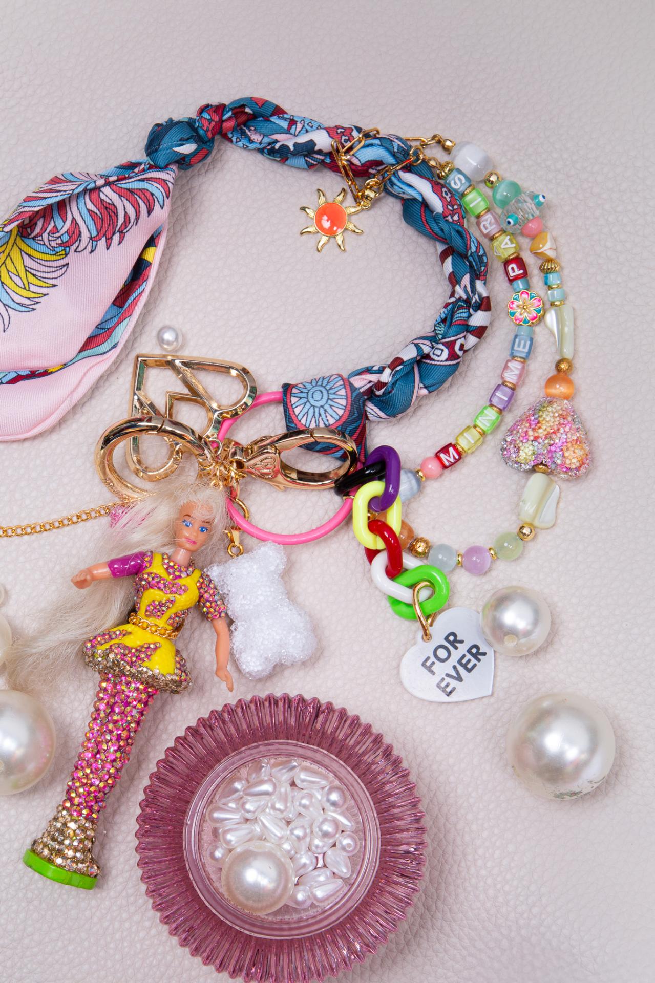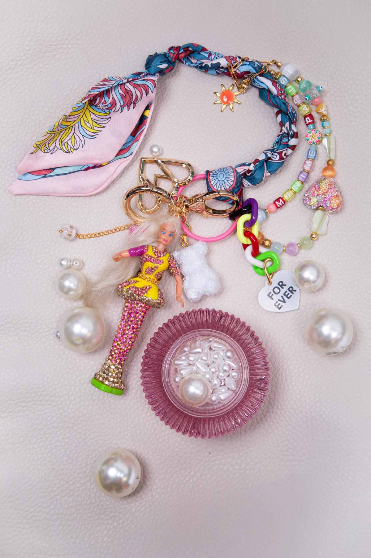 A one-of-a-kind Barbie charm loaded with beads, bears, and Y2K sparkle, Doll Haus is plastic, fantastic, and made to shine.