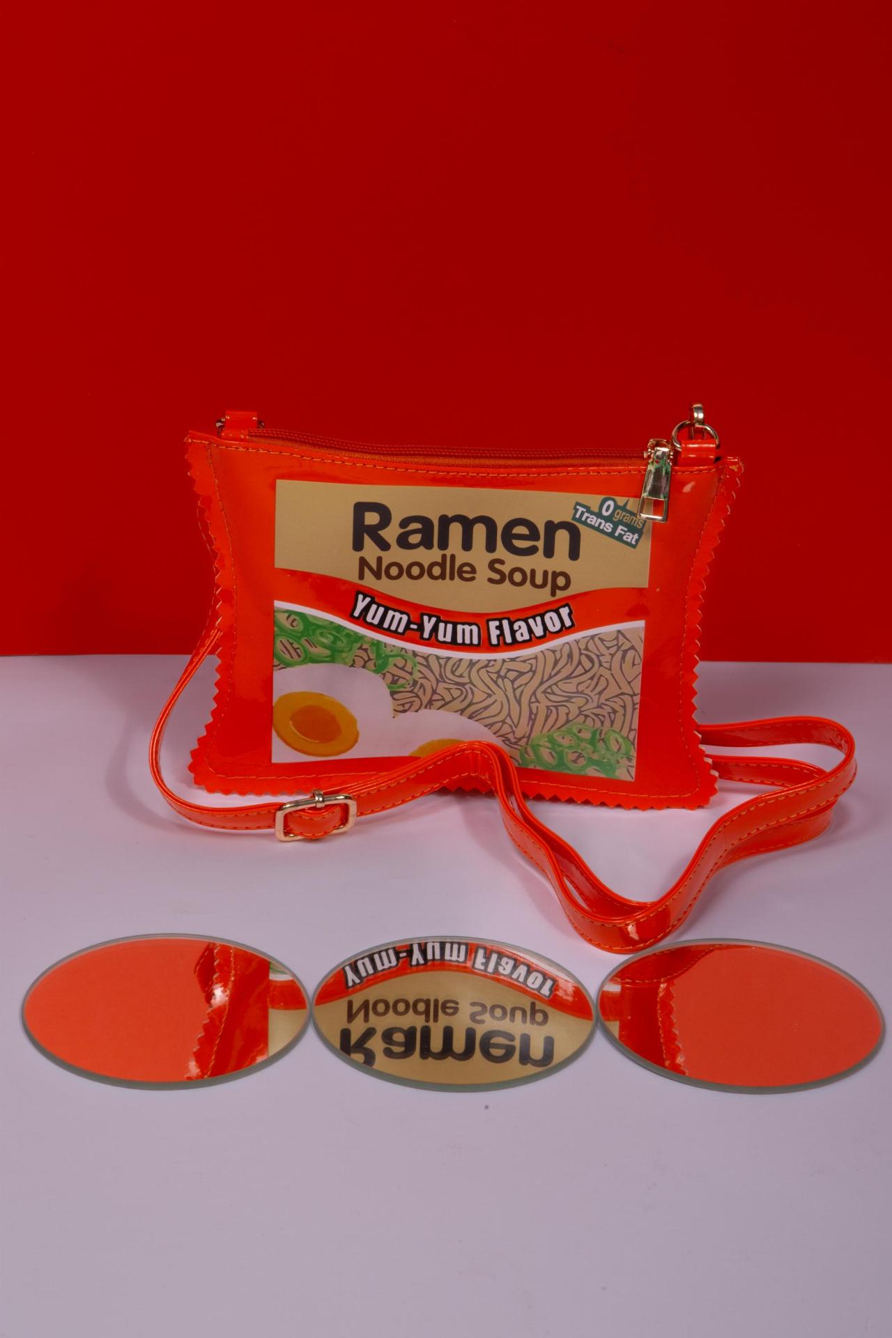 Ramen Noodle Clutch—spicy, glossy, and totally iconic. The snack you wear when your outfit needs extra seasoning.