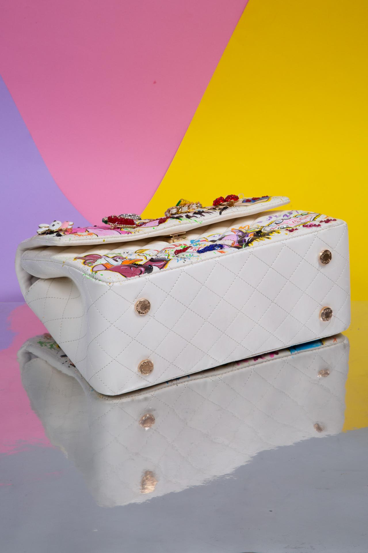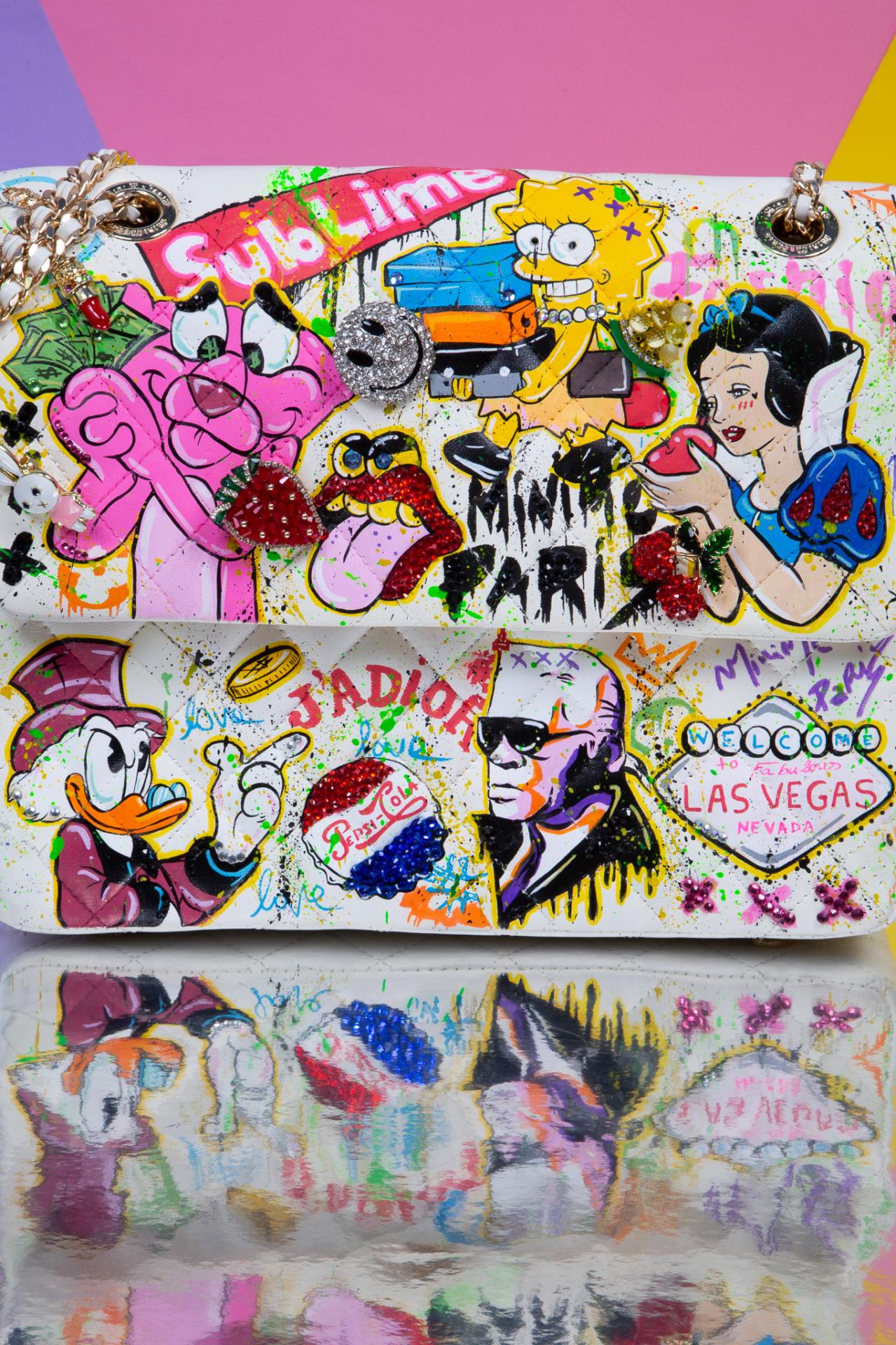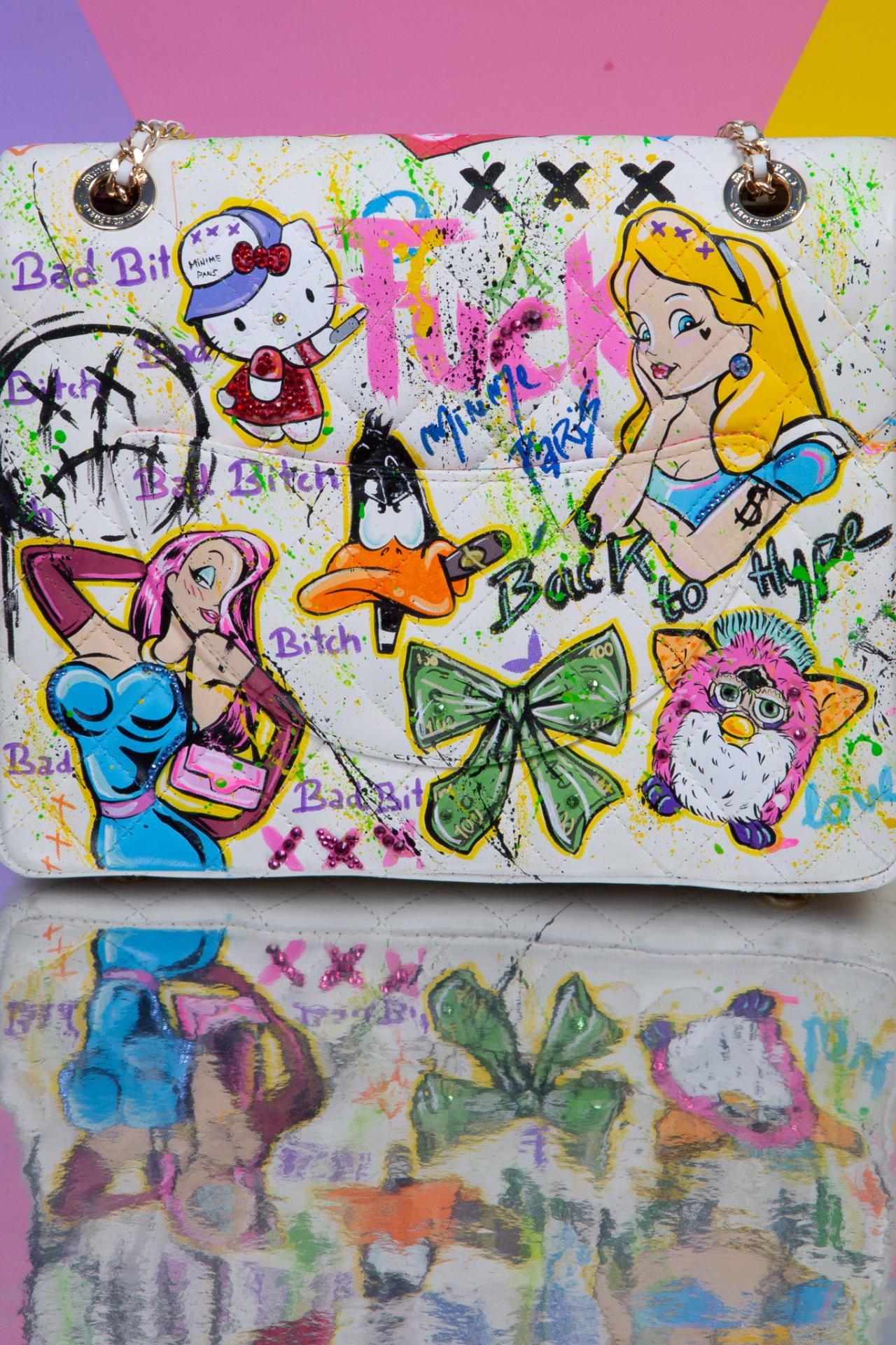 A wild pop art medium hard, collage bag bursting with Paint, sass, and nostalgia made to be seen.