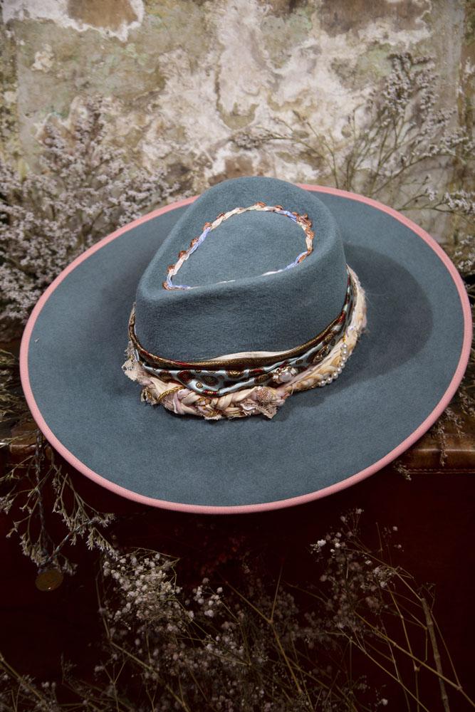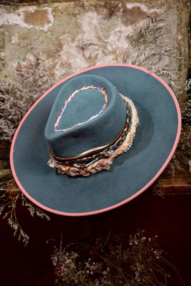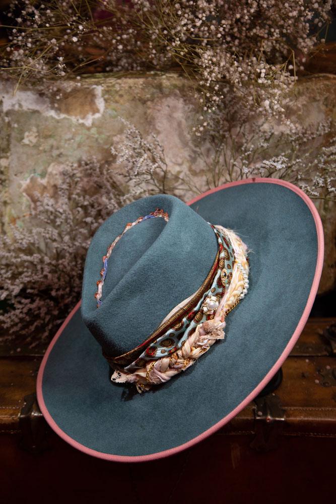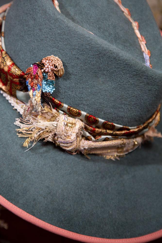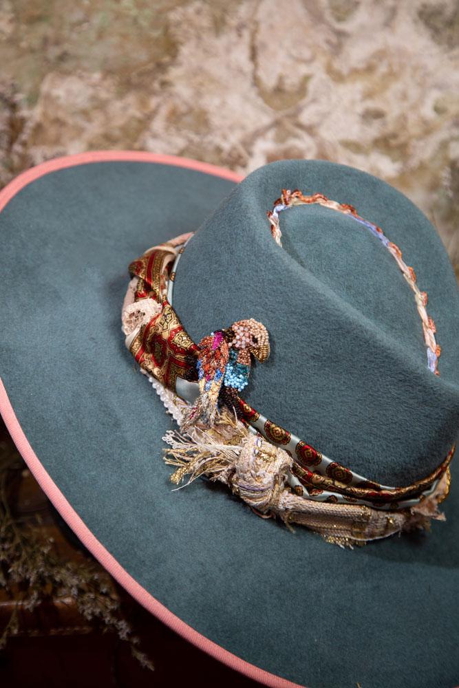 Artisanal Statement Hat with Vintage Textiles, Fur & Decorative Flair