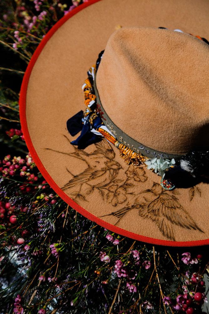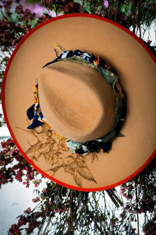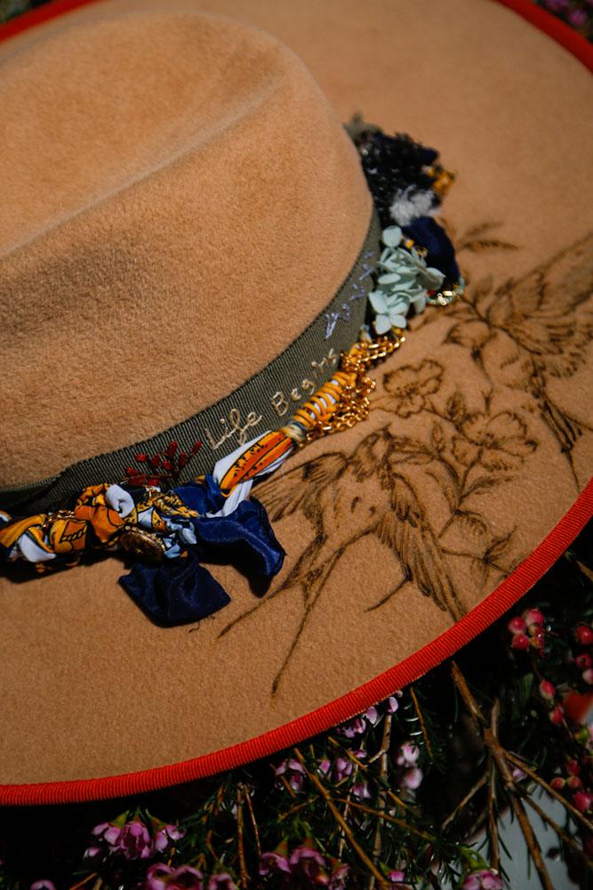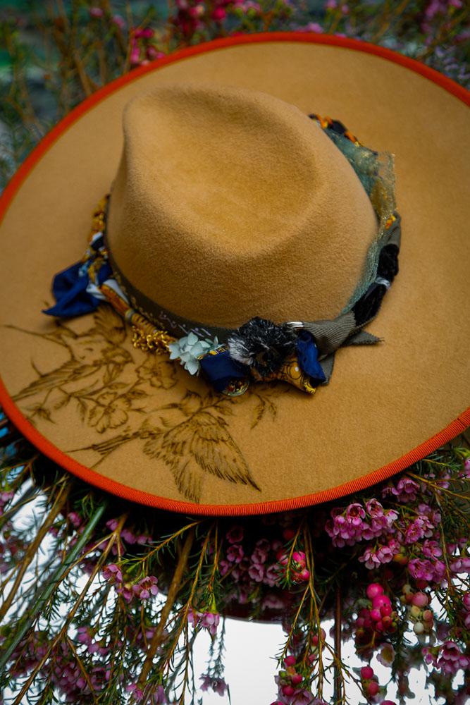 Camel Felt Hand-Molded Hat with Pyrography Art