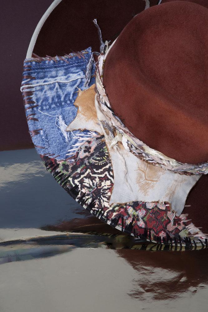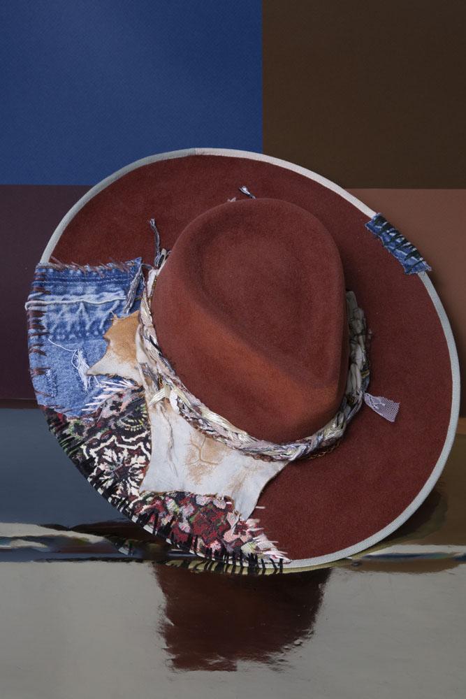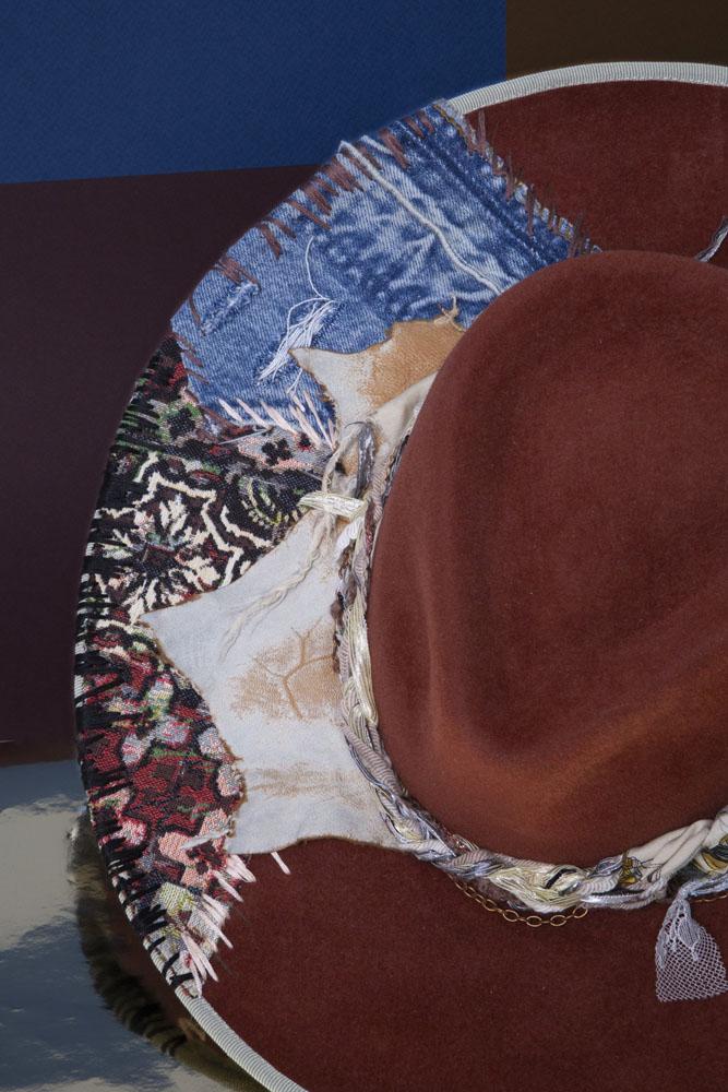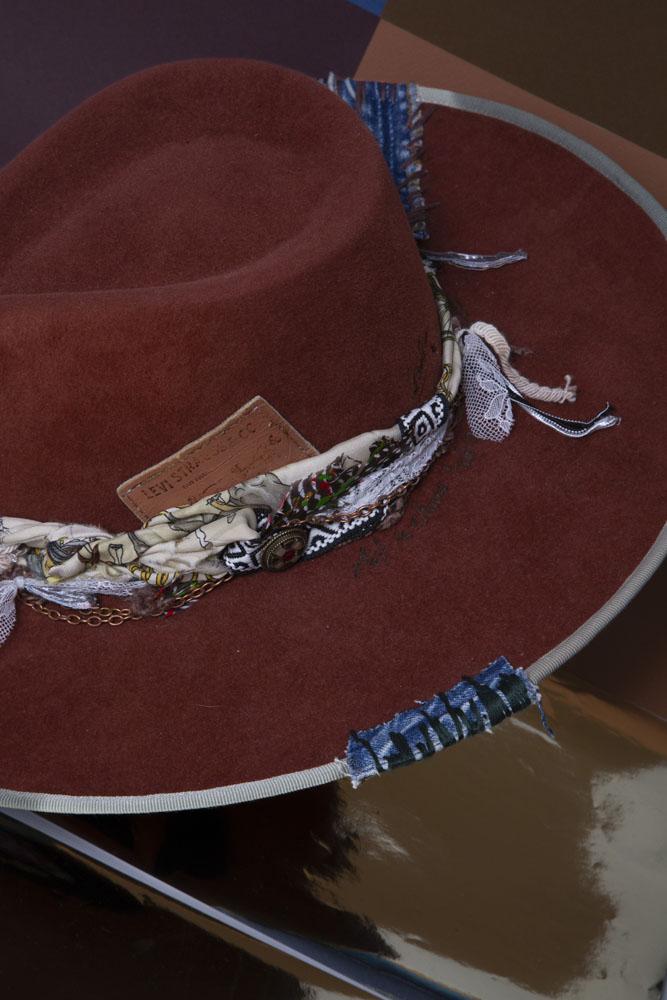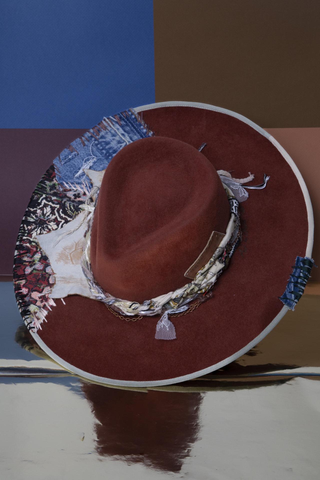 Artisanal Statement Hat with Vintage Textiles, Fur & Decorative Flair