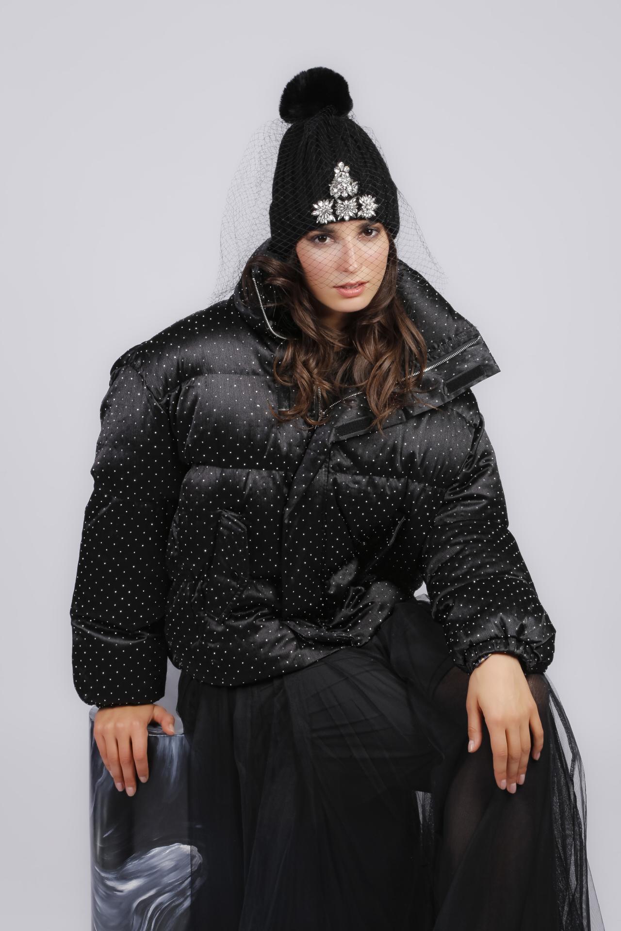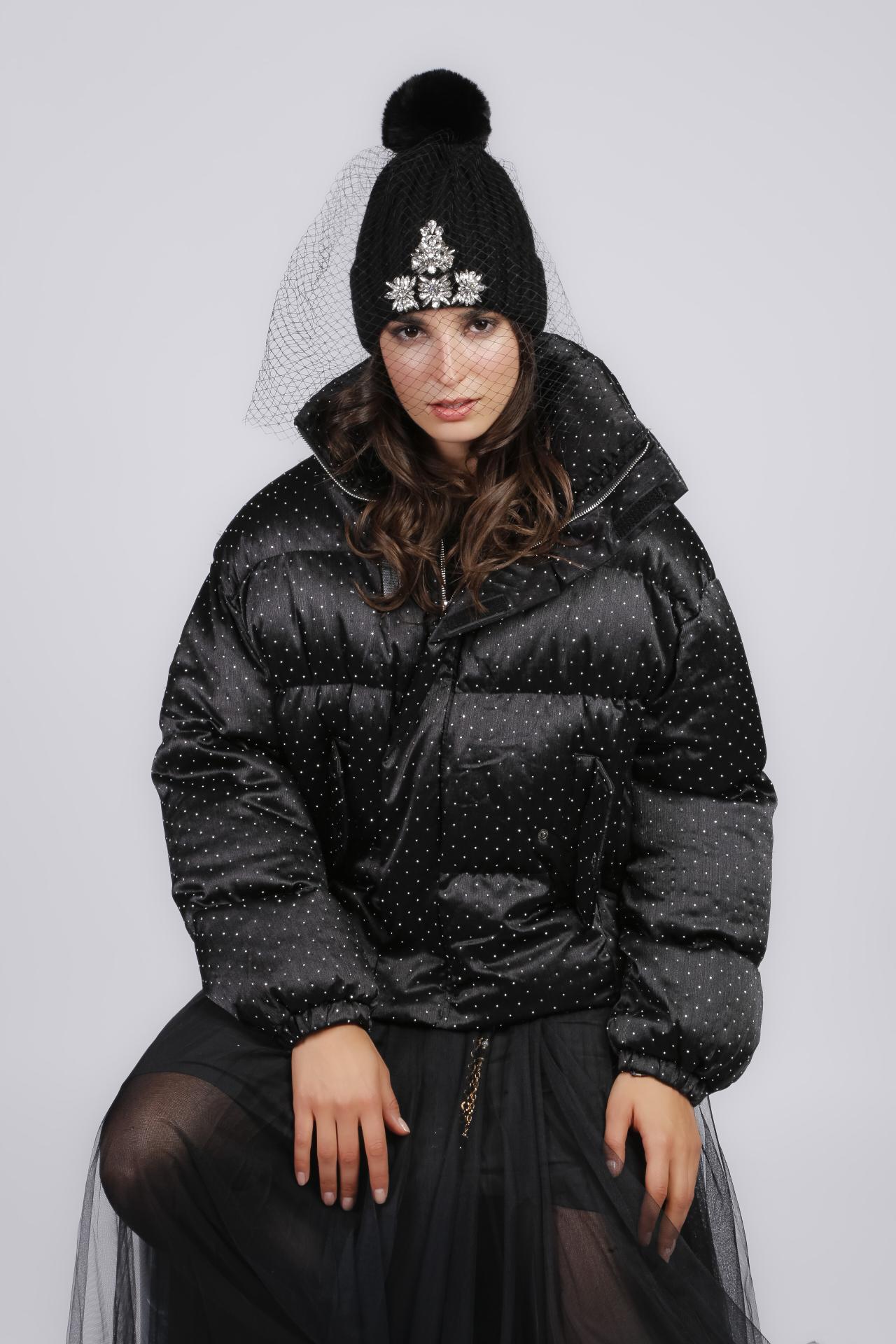 The Midnight Crystal Puffer elevates winter style with its glossy black finish, crystal studded fabric, and voluminous silhouette, blending warmth and couture allure in true MiniMe Paris fashion.