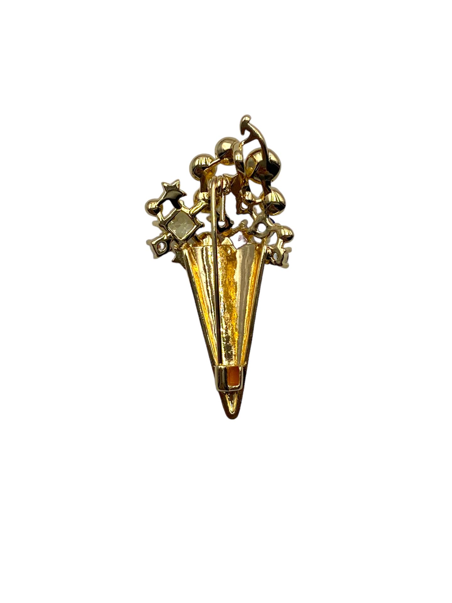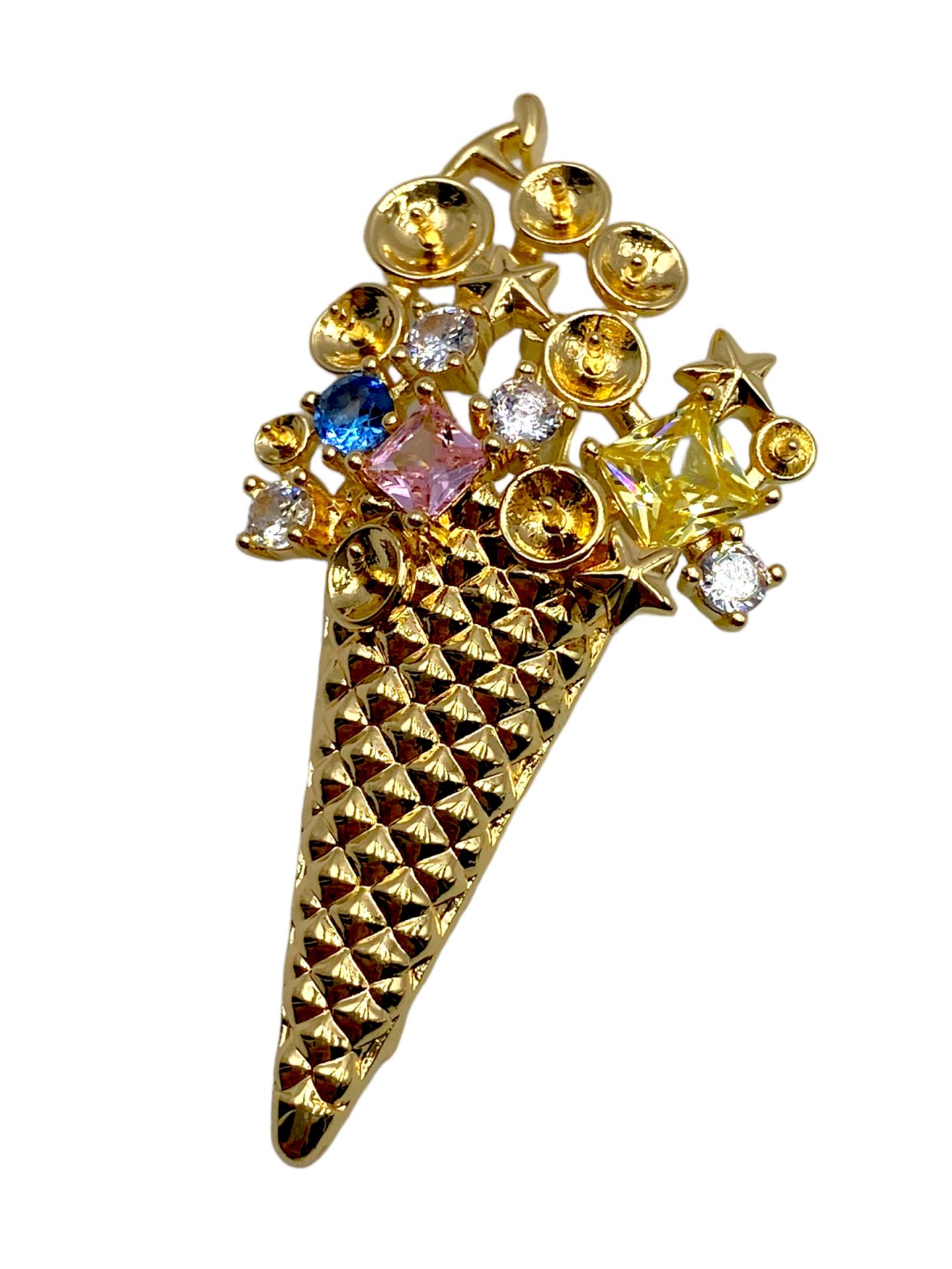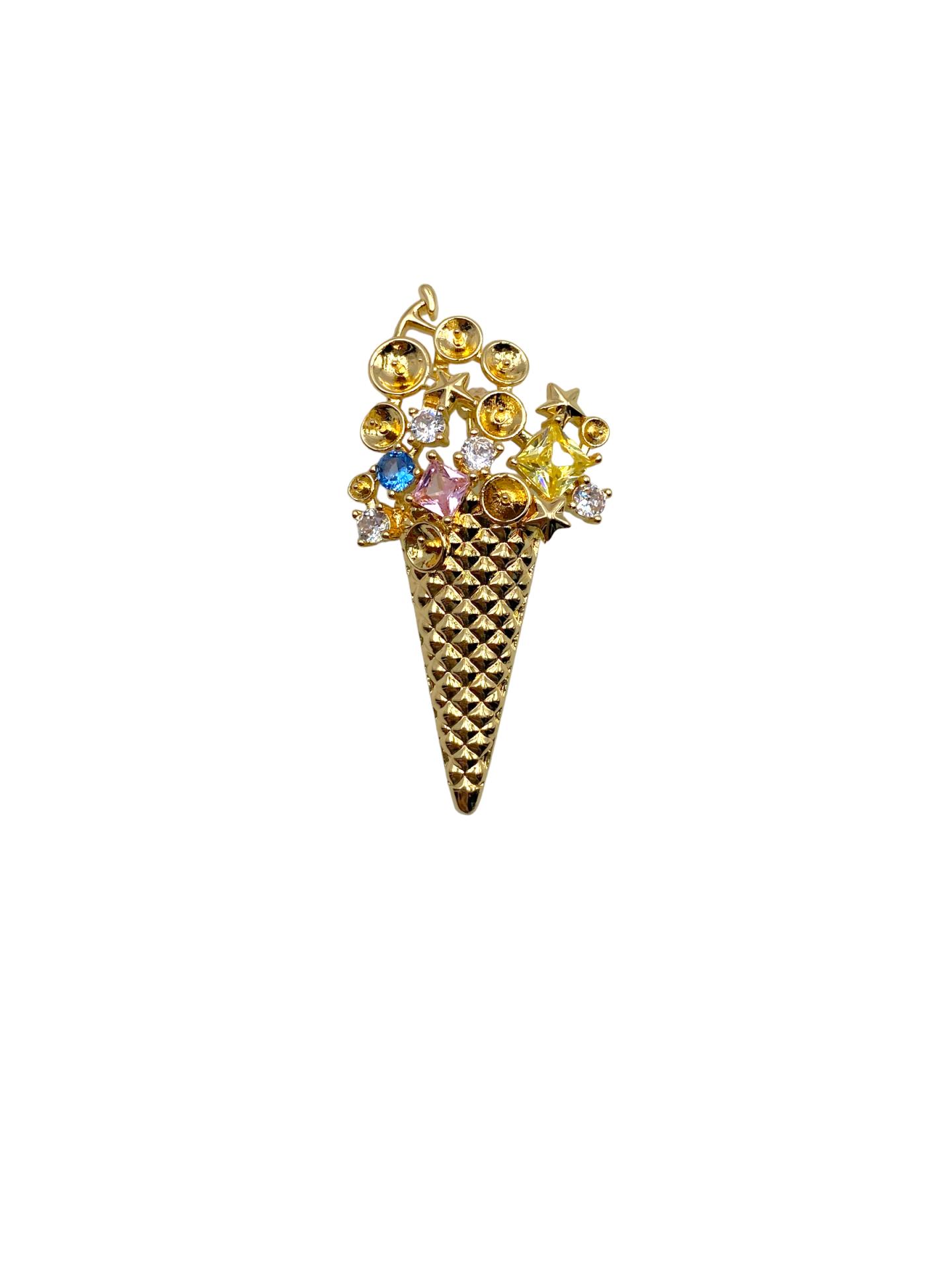 Step into a universe of sweetness and sparkle with the Cosmic Ice Cream Gold Brooch. Designed with a playful yet elegant twist, this brooch features an ice cream cone topped with cosmic-inspired elements. The shimmering Gold creates a refined base, while sparkling rhinestones and subtle details elevate the brooch to a celestial level. Whether you're indulging in the fun of a quirky accessory or looking to add a touch of magic to your outfit, this brooch combines whimsy with style in a way that's truly out of this world.