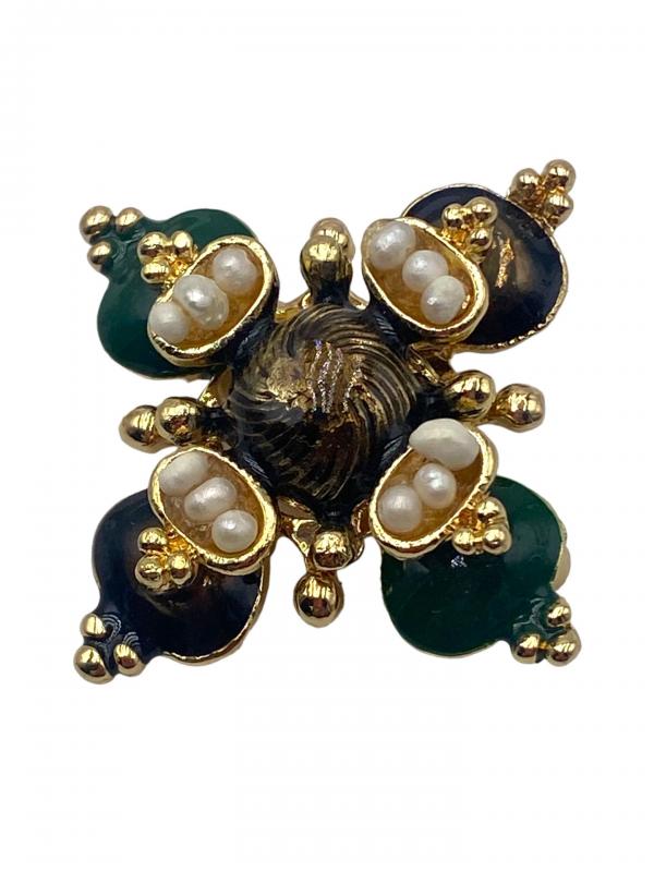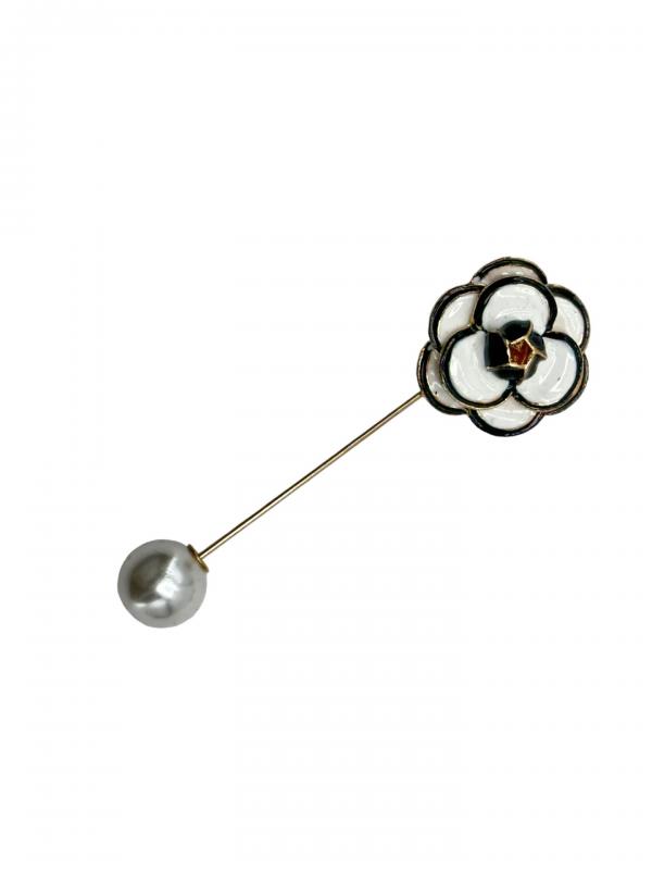 Noir Camellia Brooch Pearl & Crystal Petals
