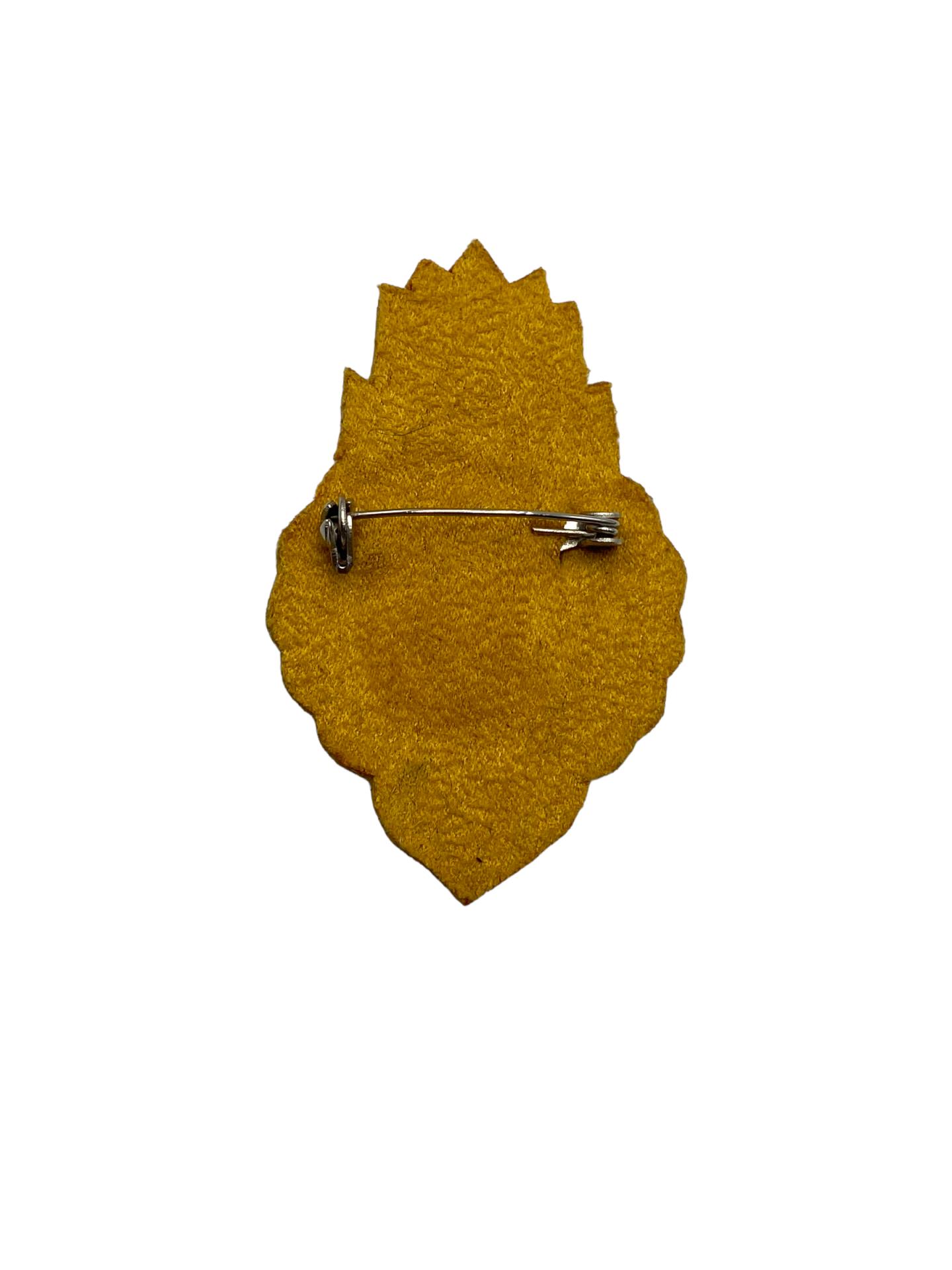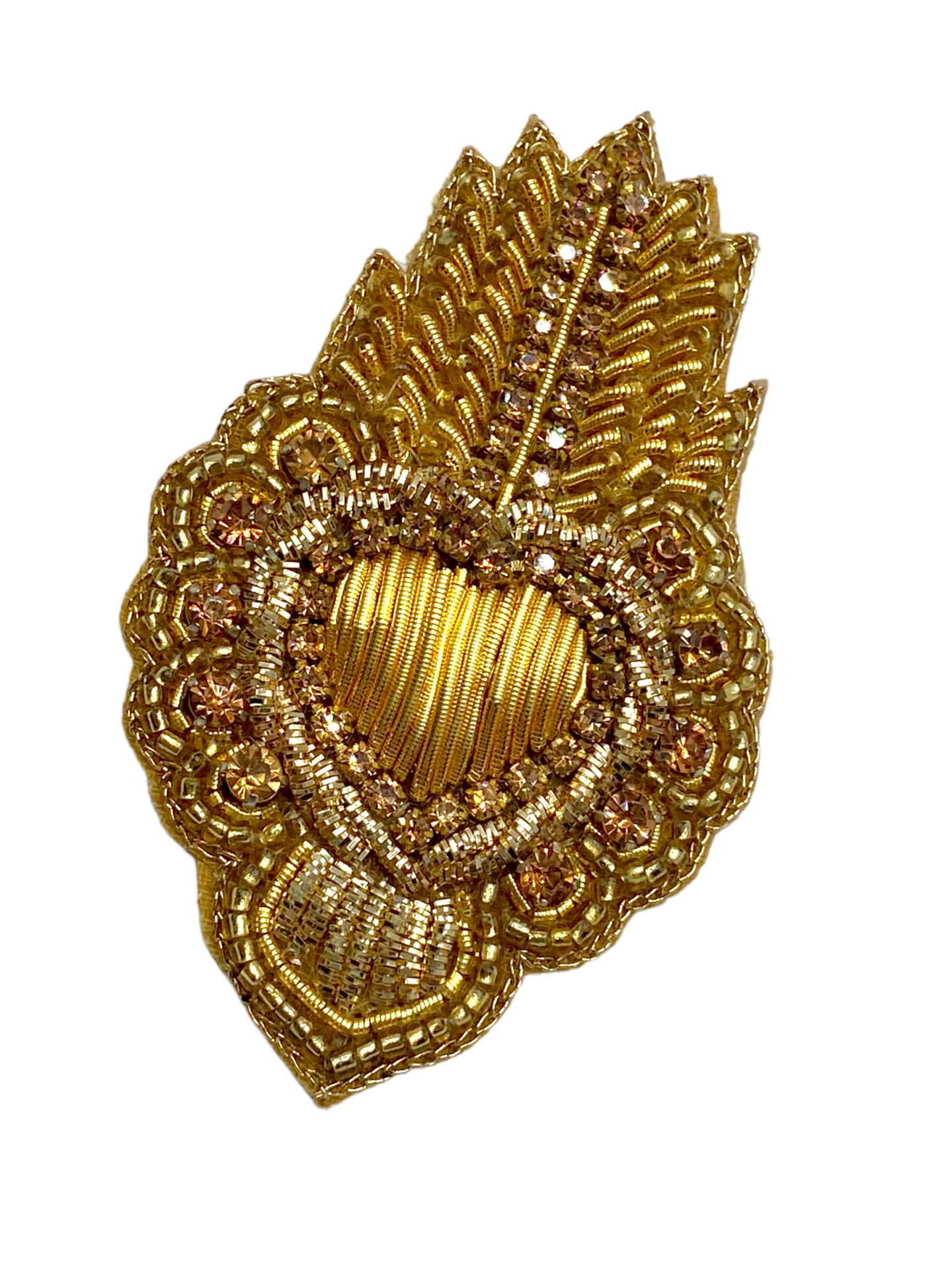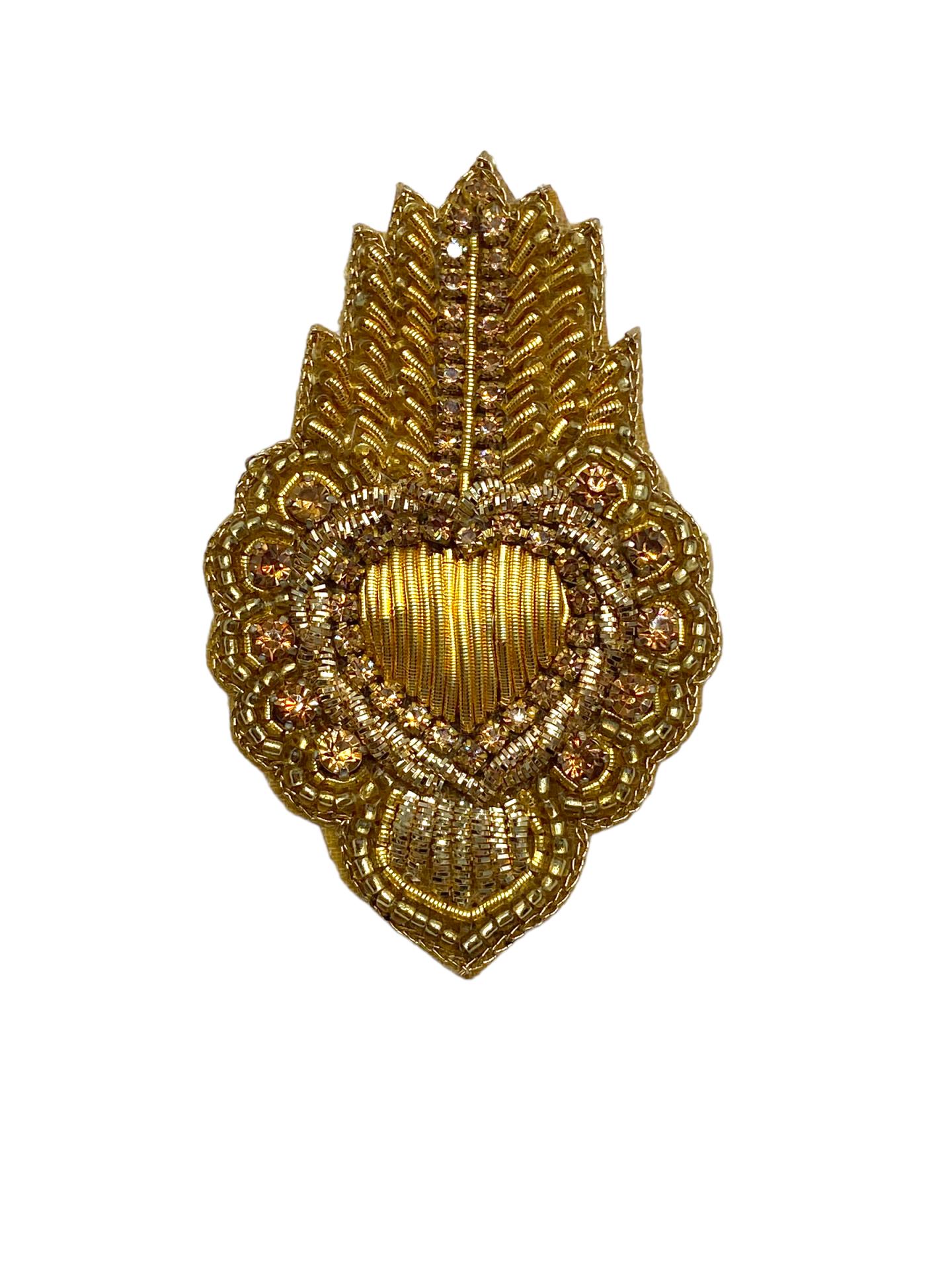 Gold brooch with heart and royal ornaments - metal threads - zirconium