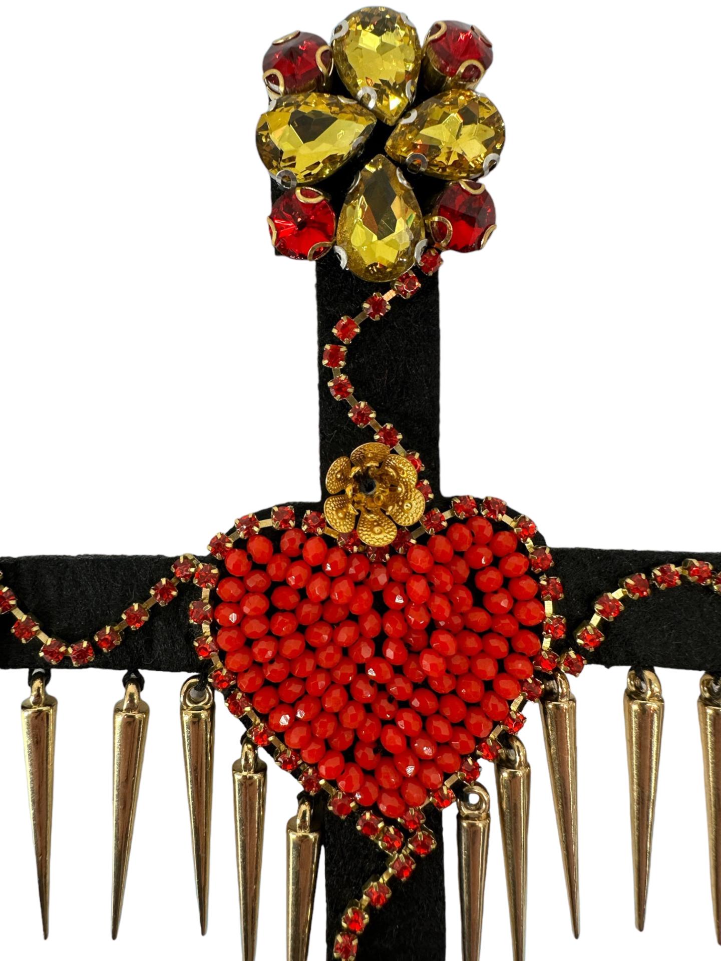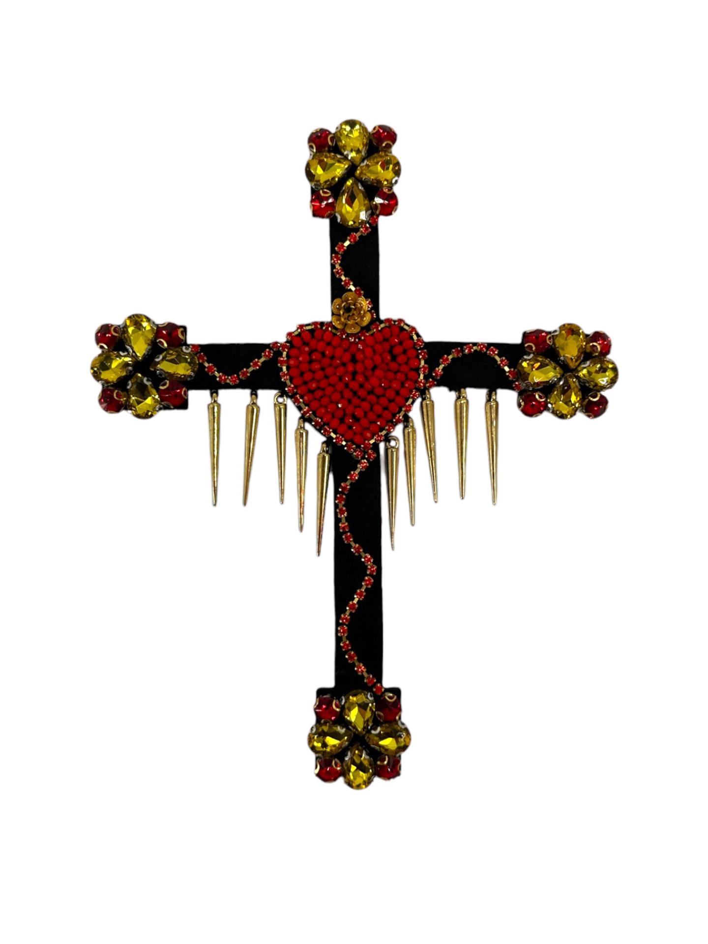 Black cross with red heart centerpiece and gold accents