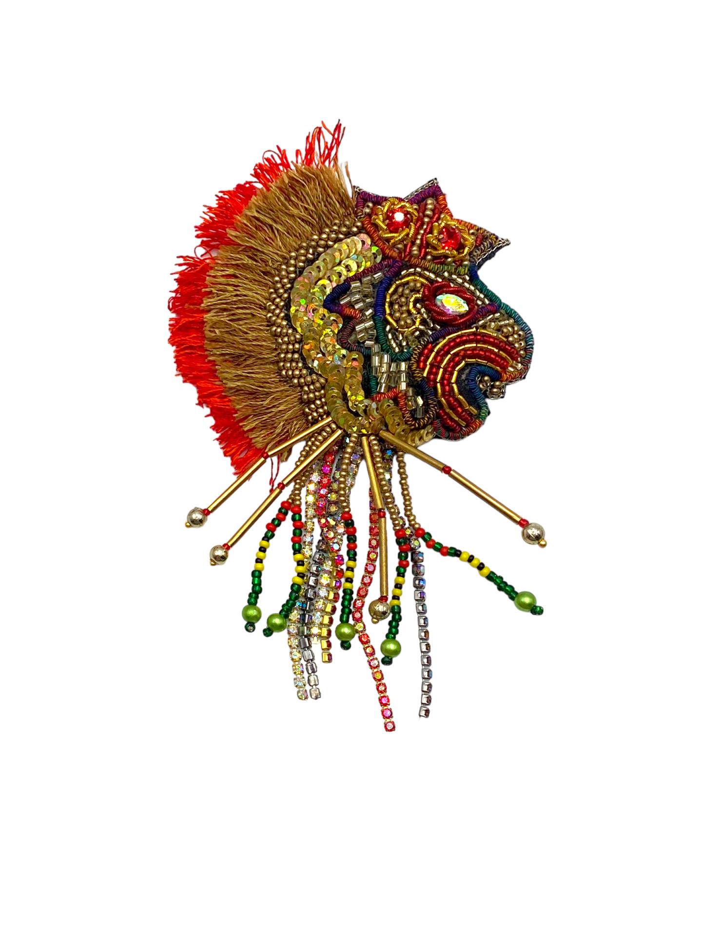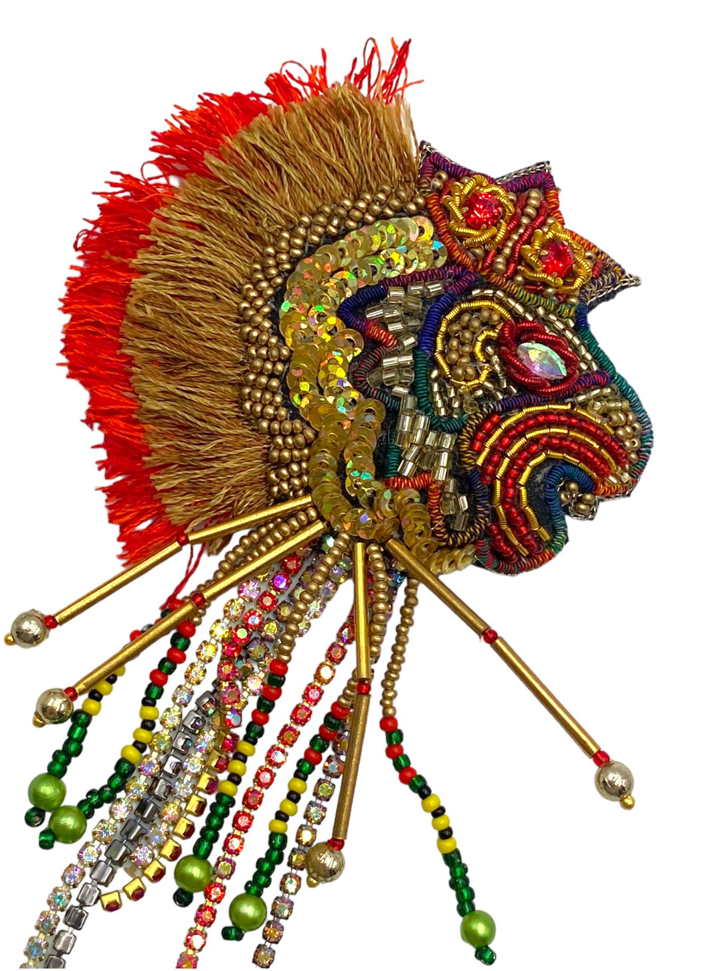 This Leo Astrological Sign Brooch is a bold and radiant accessory that celebrates the powerful and charismatic Leo spirit. This brooch features the majestic lion, symbolizing strength, leadership, and courage, all beautifully crafted with metallic threads, pearls, sequins, and rhinestones. The detailed design captures the essence of Leo's fiery nature, making it a standout piece for any jewelry collection.