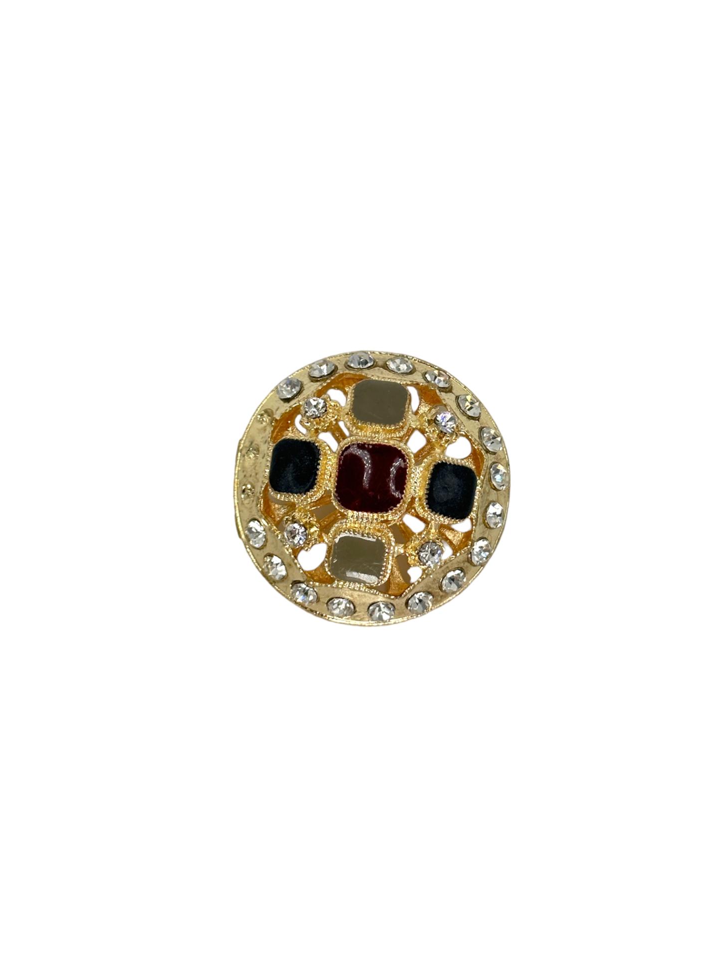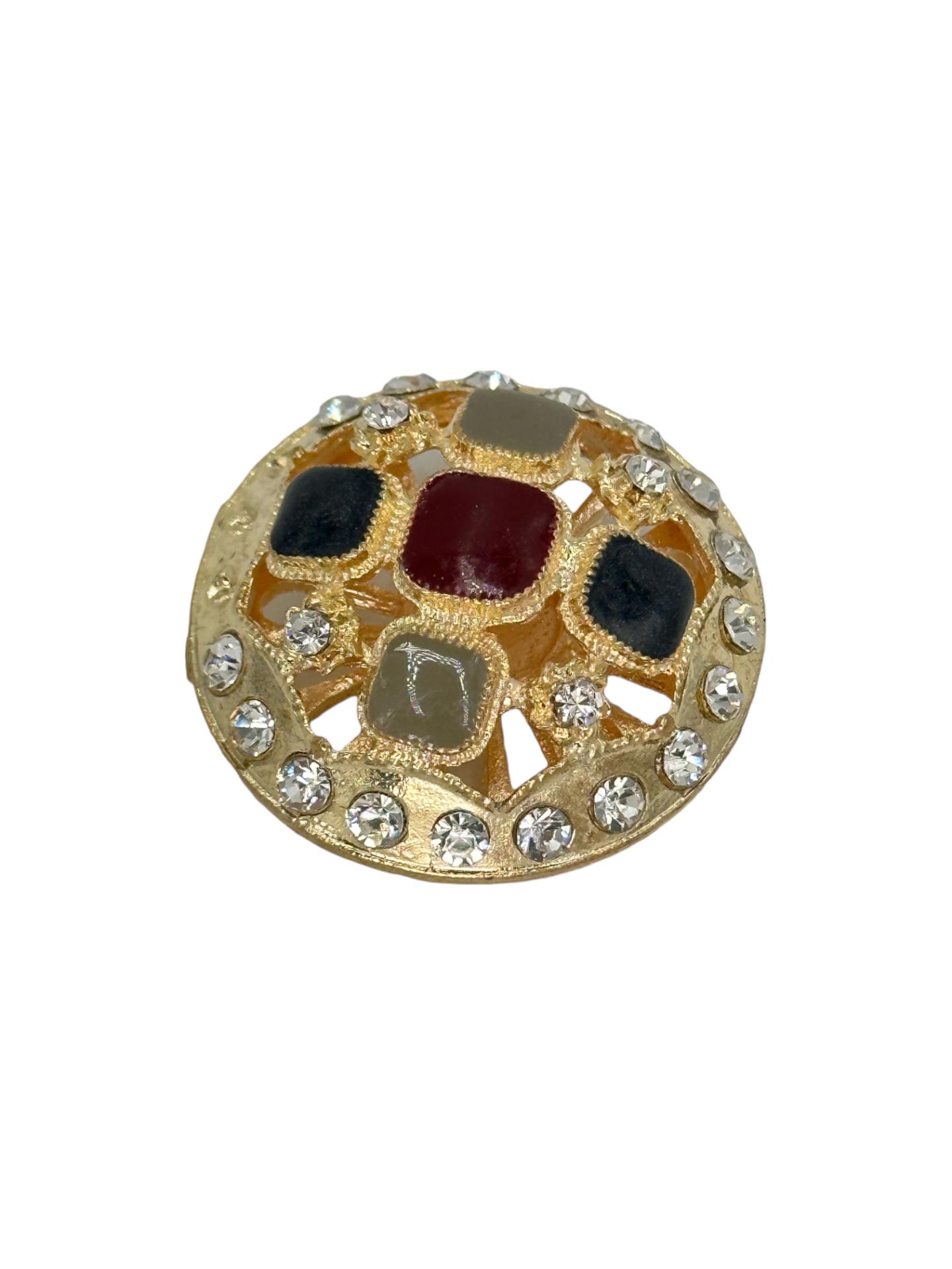 Luxurious, regal, and full of grandeur—the Royal Button is a true masterpiece. Featuring a striking blend of rich gold, deep black, and dazzling rhinestones, this button embodies opulence and sophistication. Its intricate design, with sparkling gems set against a sleek black background and framed in gold, creates a dramatic contrast that exudes high fashion and elegance.