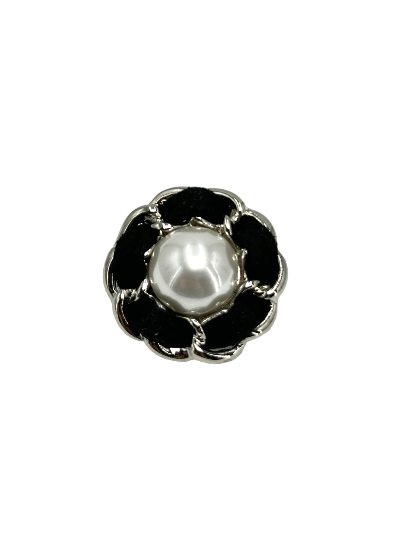Elegant, striking, and full of refinement—the Silver, Black, and Pearl Metal Button blends the classic allure of pearls with the modern sophistication of silver and black. Featuring a sleek silver metal base, this button showcases a stunning black center with a lustrous pearl nestled in the middle. The combination of the bold black and the soft pearl creates a perfect balance of contrast and elegance, making it a timeless addition to any garment or accessory.
