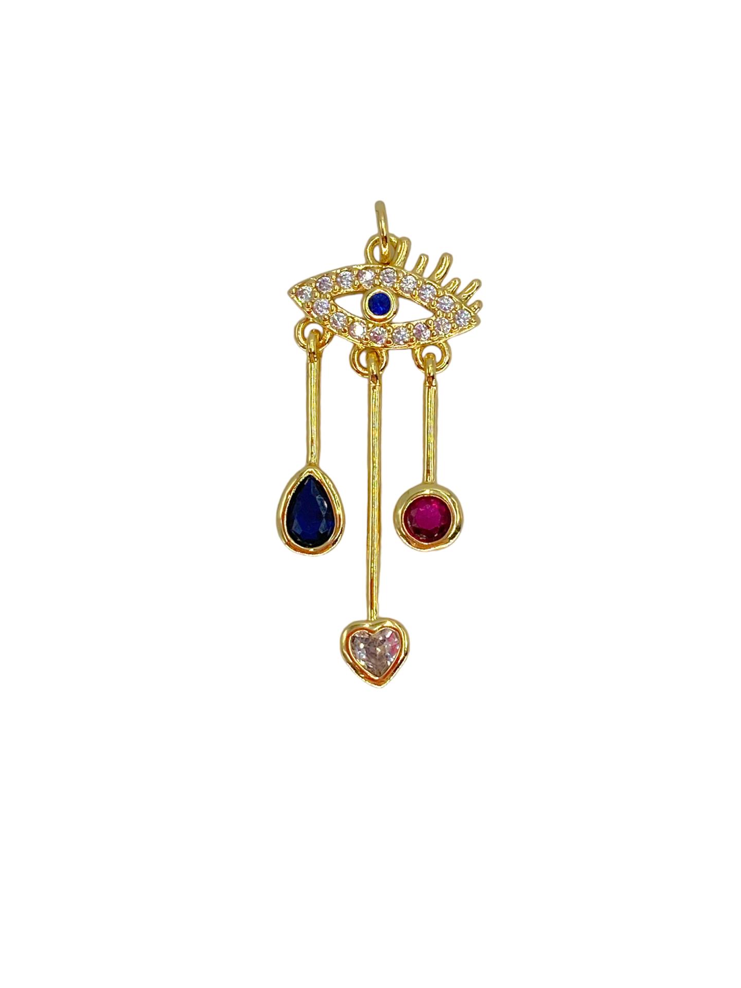 Gold-plated metal Eye Charm with colorful tears full of beauty