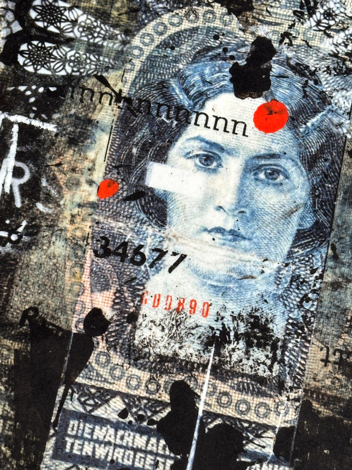 Heavy collage aesthetic with contrasting textures and bold messaging