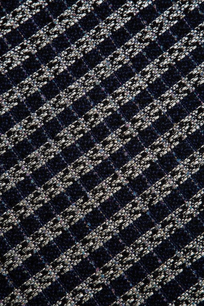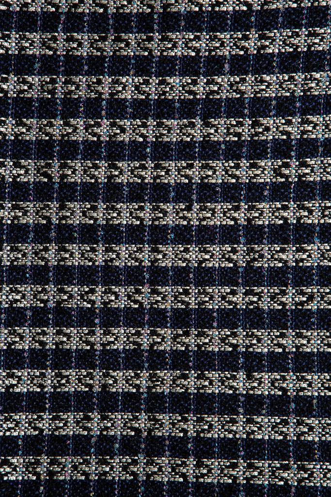 Navy Blue Tweed Fabric with Structured Ivory and Metallic Check Pattern