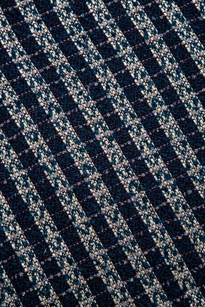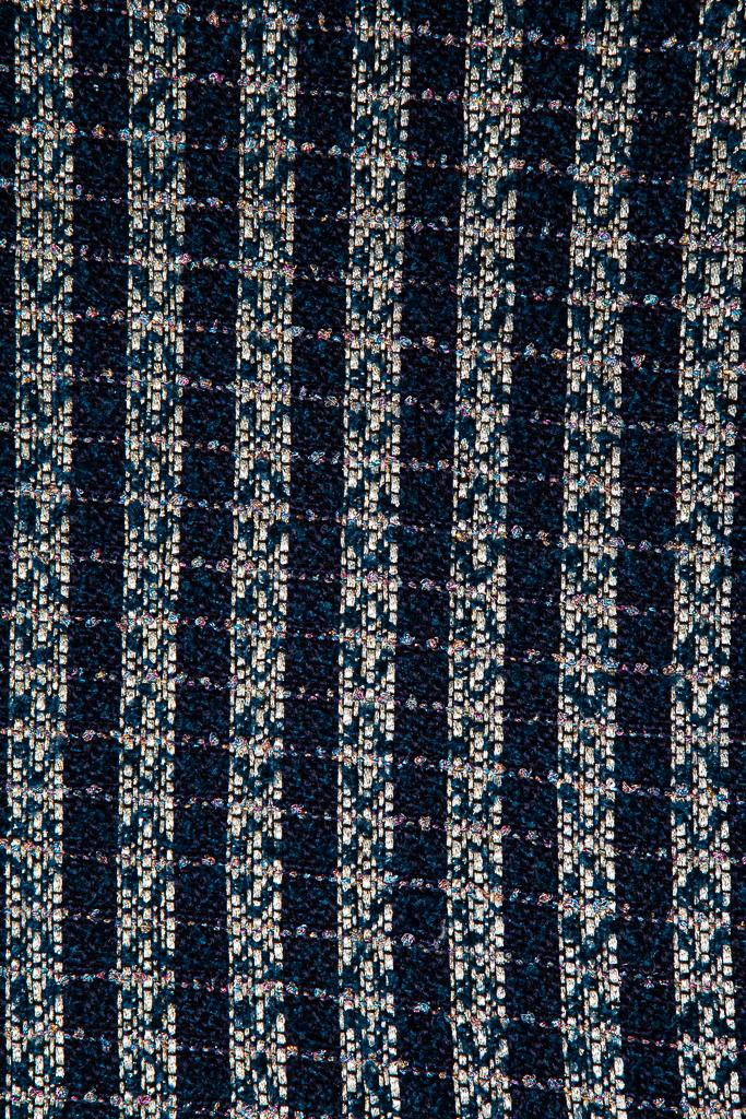 Vertical striped tweed pattern in dark navy with metallic and multicolor threads