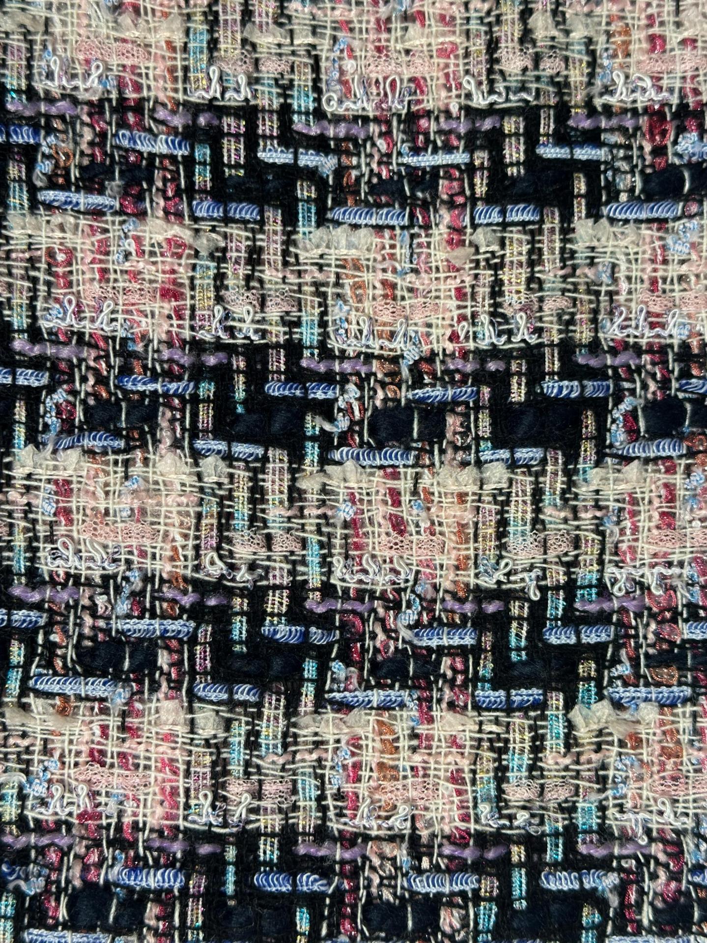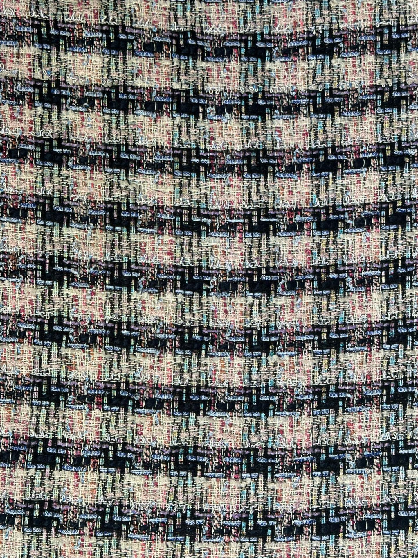 The Evening Blush Tweed Fabric brings a moody elegance to a classic silhouette. Featuring a blush-toned base woven with navy, ivory, and subtle metallic threads, this tweed offers softness with depth—perfect for transitional and evening-ready designs. The check pattern adds structure while the color palette keeps it refined and feminine.