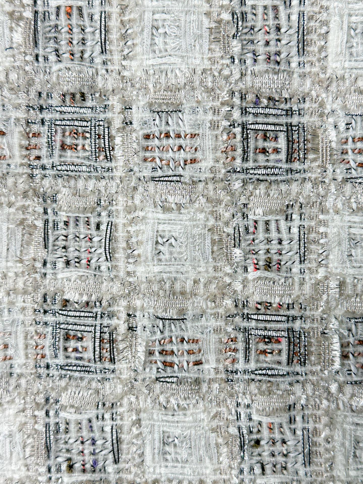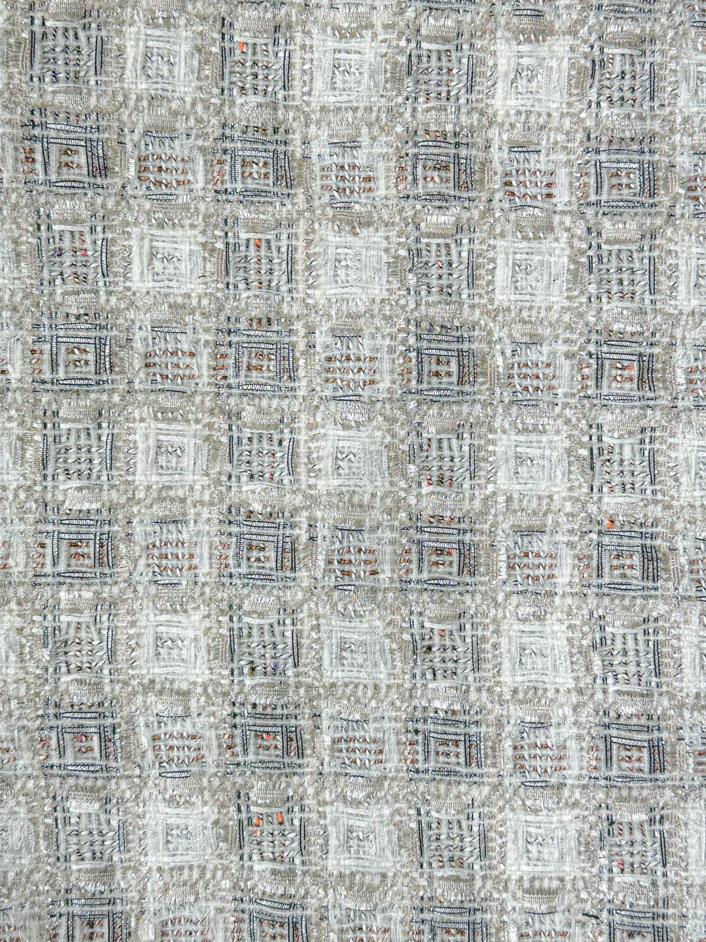Captures the softness of snowfall in textile form with the Snow Tweed Fabric, a beautifully woven material featuring a cool-toned palette of whites, grays, and subtle metallic threading. With its intricate crosshatch weave and frosty color scheme, this fabric is perfect for winter-inspired fashion, elegant accessories, or luxe home accents.