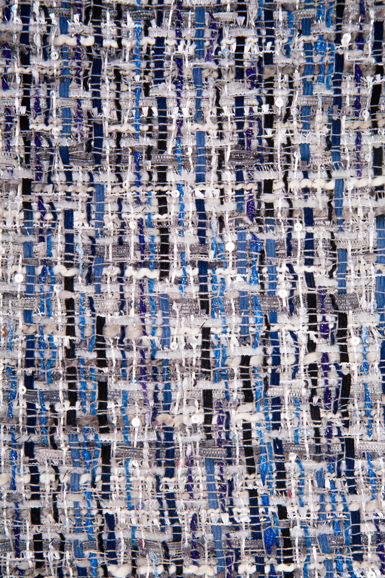 The Cornflower Tweed Fabric brings a fresh, floral-inspired palette to classic couture texture. Woven with a medley of cornflower blue, soft lilac, ivory, and navy threads, this fabric balances lightness and structure—ideal for effortless tailoring with a feminine twist. Its dimensional weave gives it a modern yet timeless appeal.
