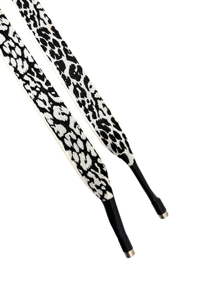 Flat Shoelaces with Bold Black and White Leopard Print and Fabric Ends