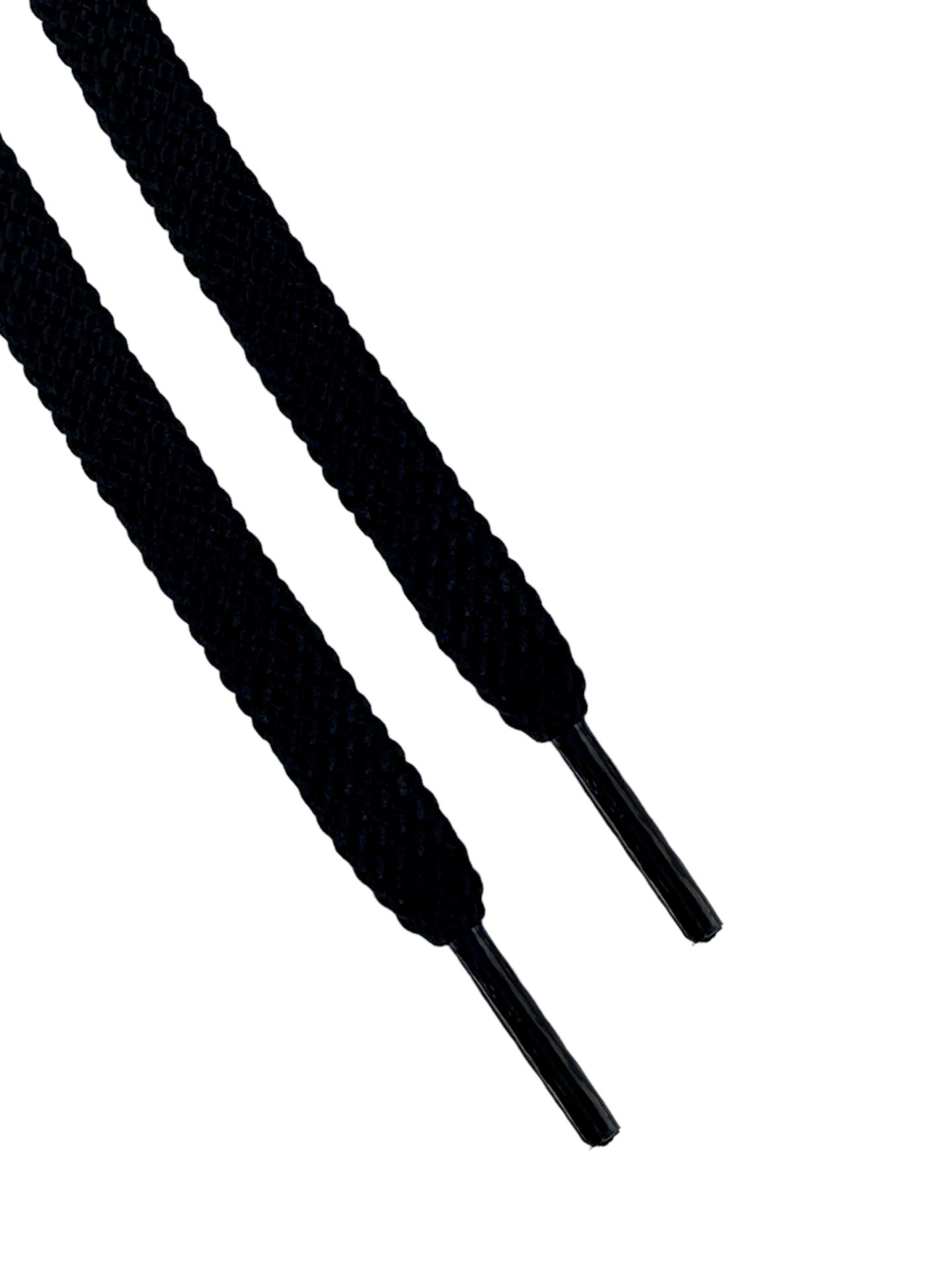 Flat dark navy laces with fabric-wrapped tips (no metal)