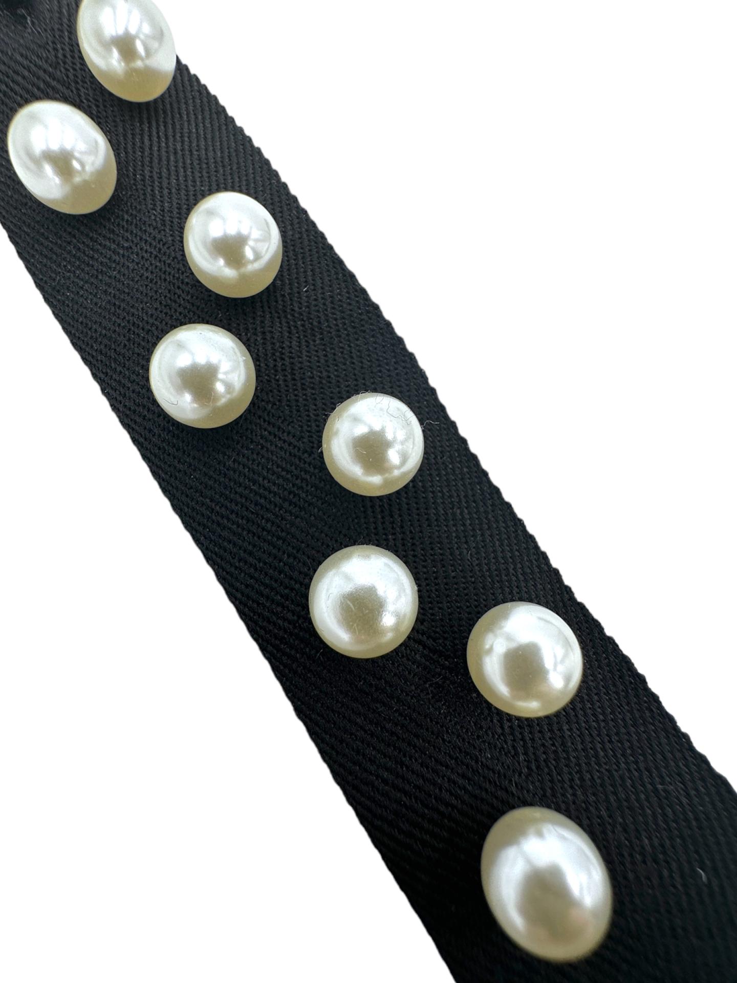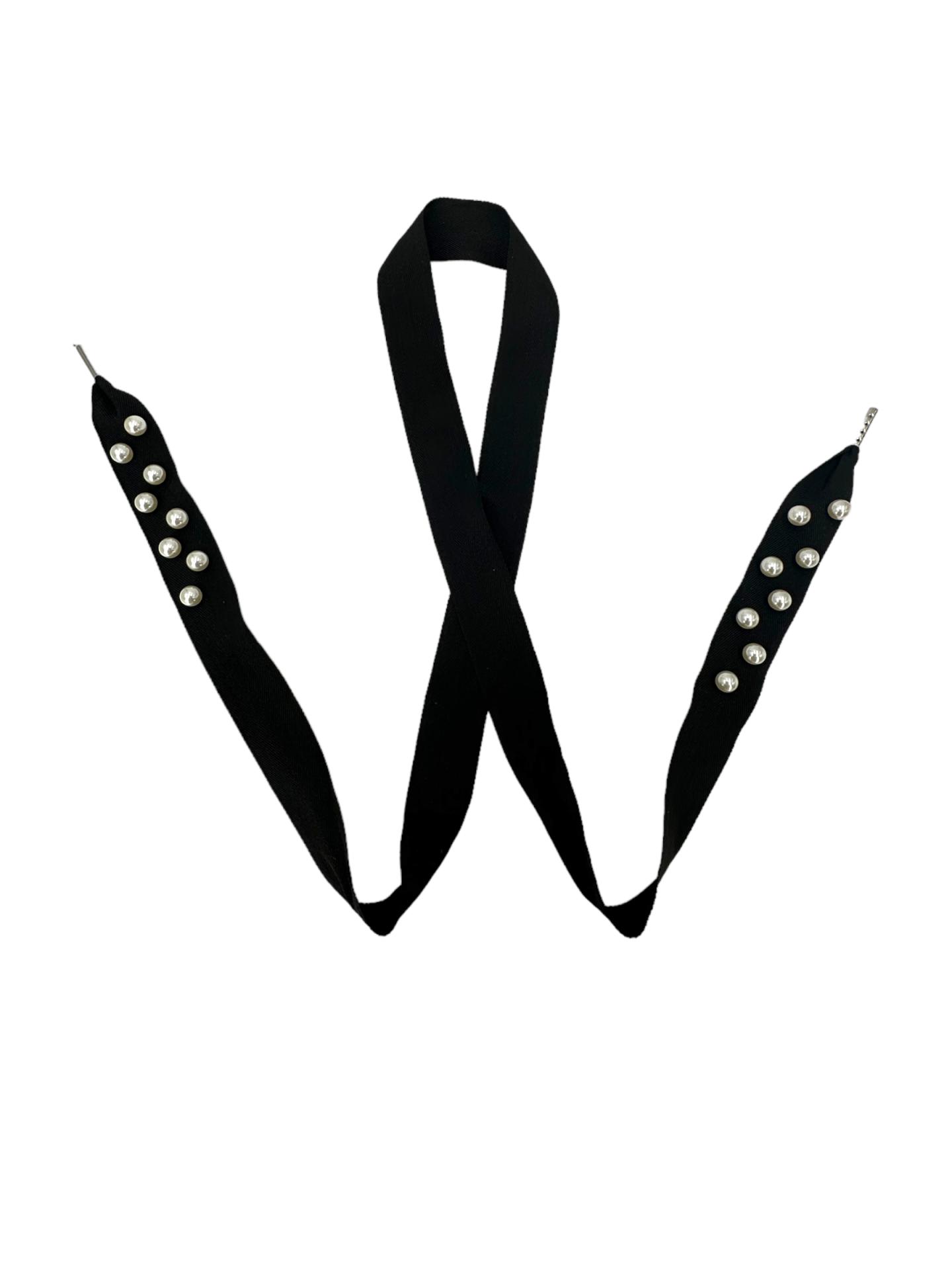 Black Fabric Shoelaces Embellished with Glossy Pearl Accents