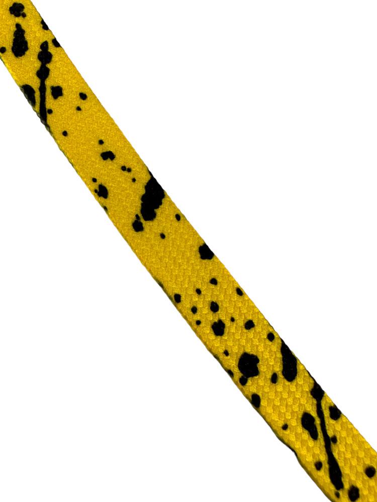 Bring edge to your look with the Yellow & Black Splatter Shoelaces, a high-contrast design made to pop. Featuring a vivid yellow base splattered with bold black paint details, these laces add instant attitude to any sneaker or boot. Finished with clean, fabric-sealed tips, they offer a graphic statement without the bulk of metal.