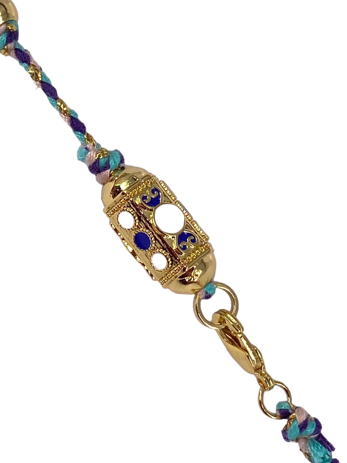 Wear the Fortune Necklace in White, Blue, and Gold and carry a symbol of luck and prosperity wherever you go.