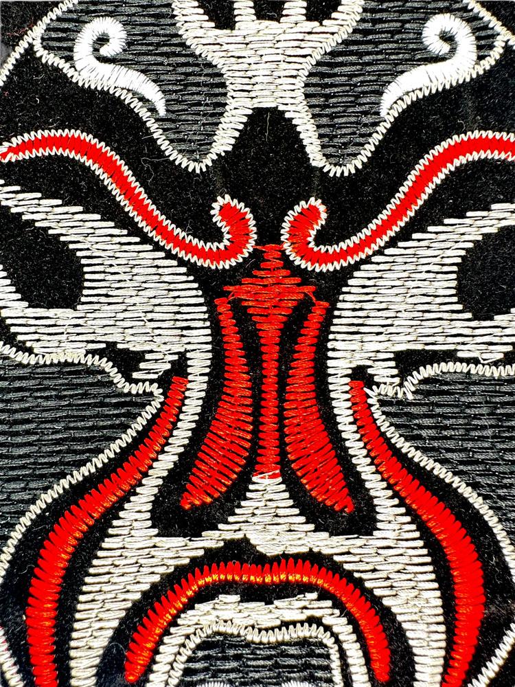Embroidered Patch of a Traditional Chinese Opera Mask with Red & Black Motif