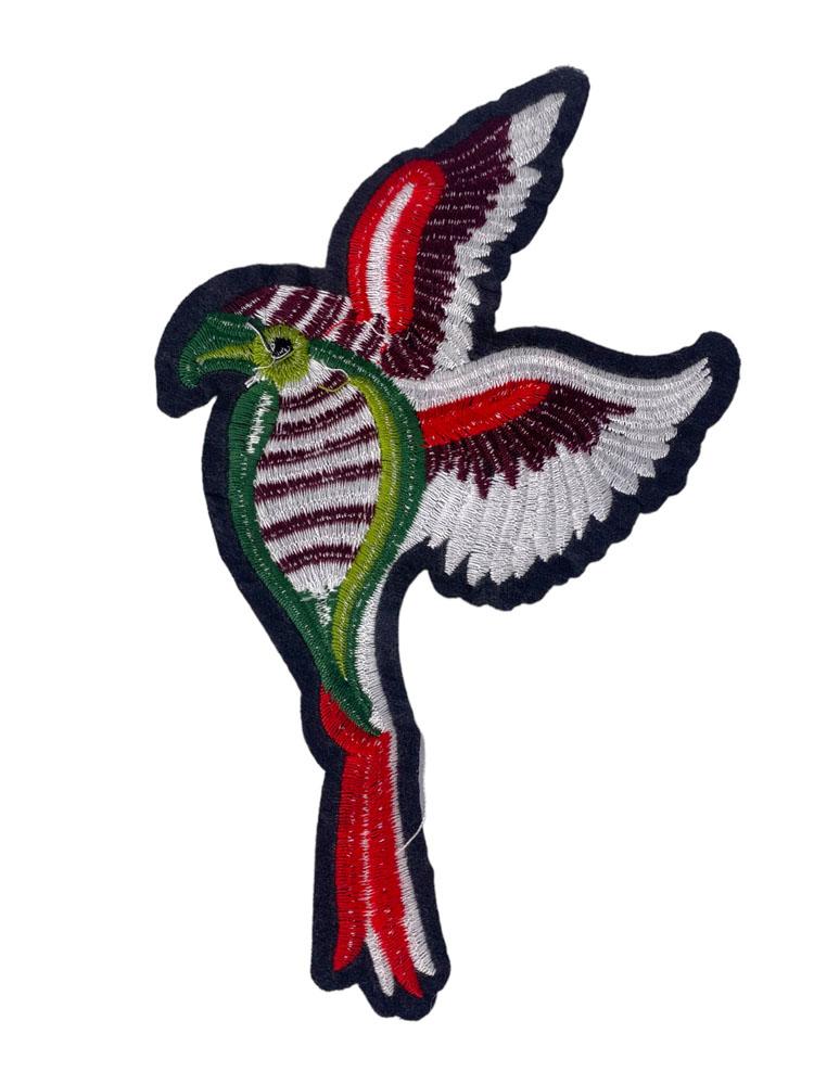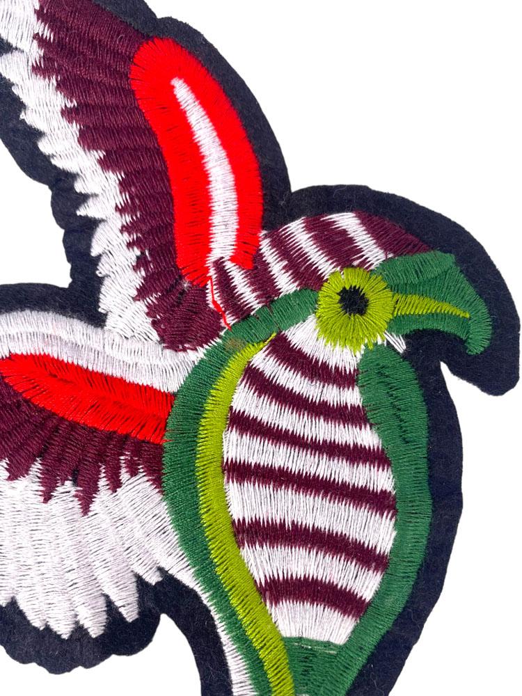 Embroidered Patch of a Stylized Bird in Flight with Graphic Detailing
