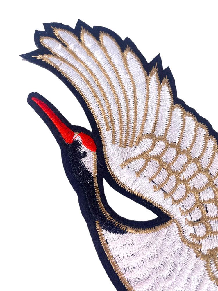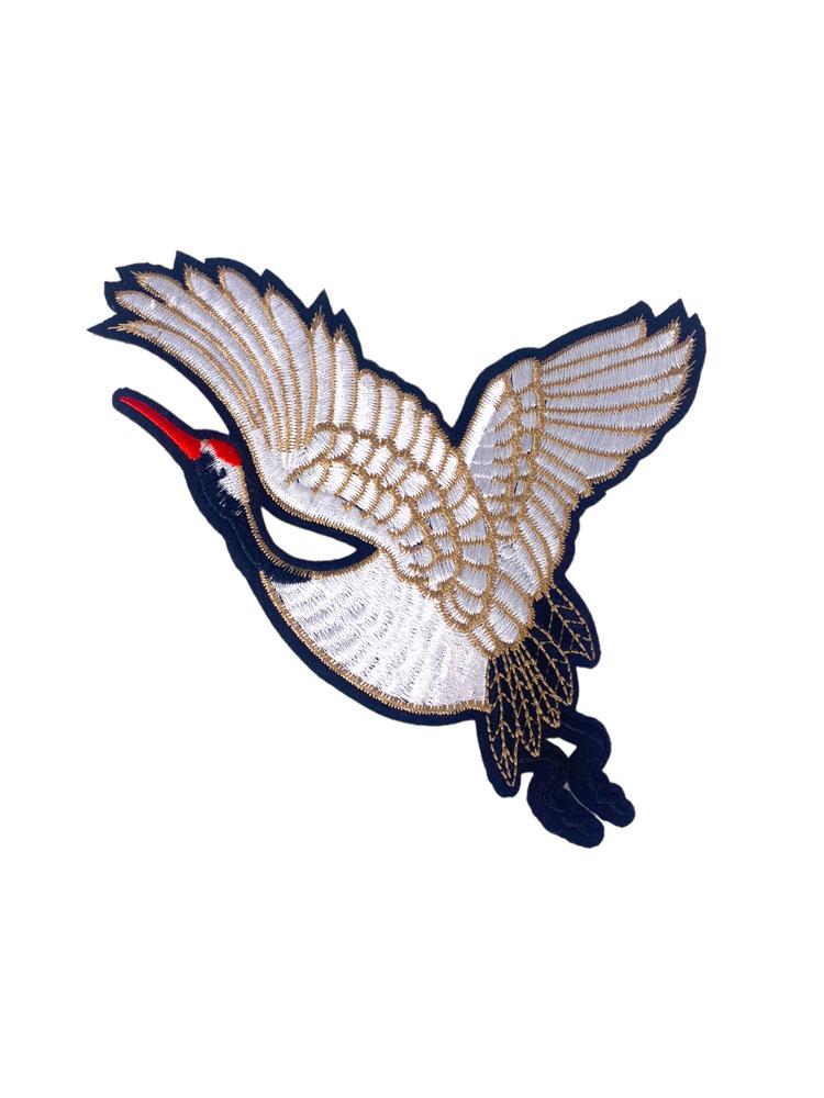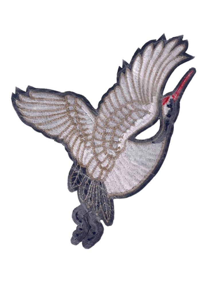 Embroidered Patch of a Flying Crane with Elegant Wing Detail