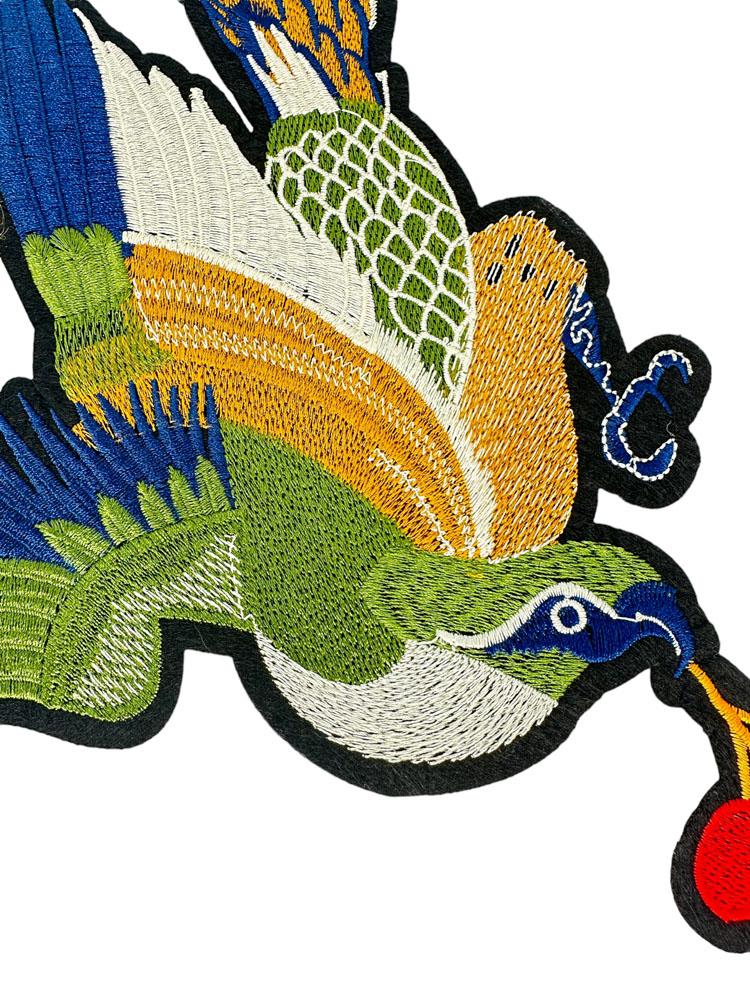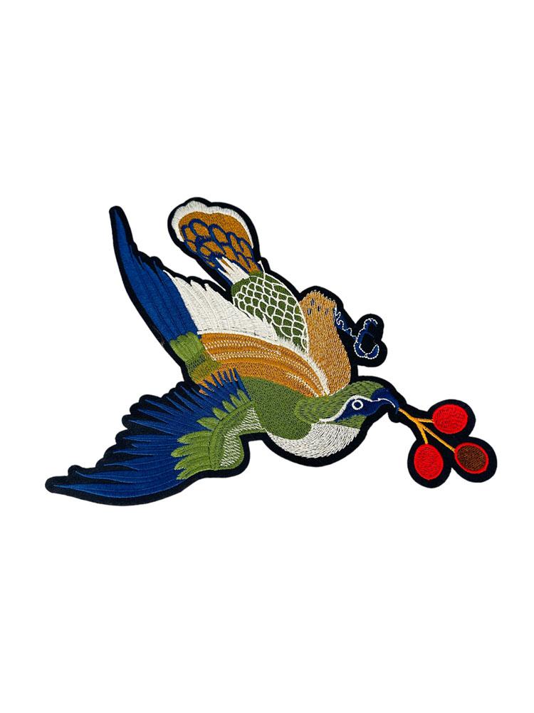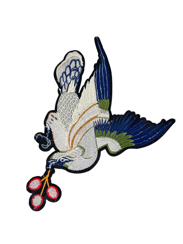 Embroidered Patch of a Colorful Dove Carrying Red Berries