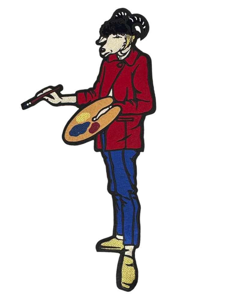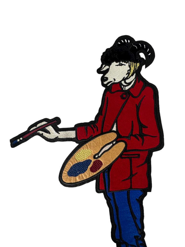 Embroidered Patch Featuring a Cartoon Artist Holding a Palette and Brush