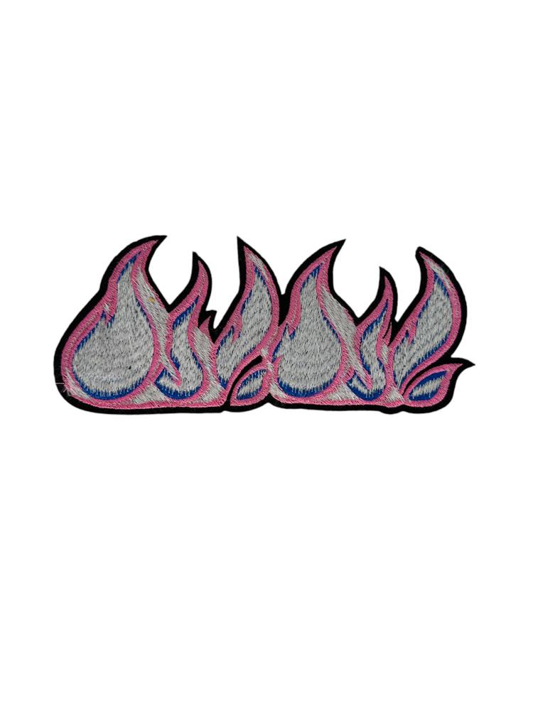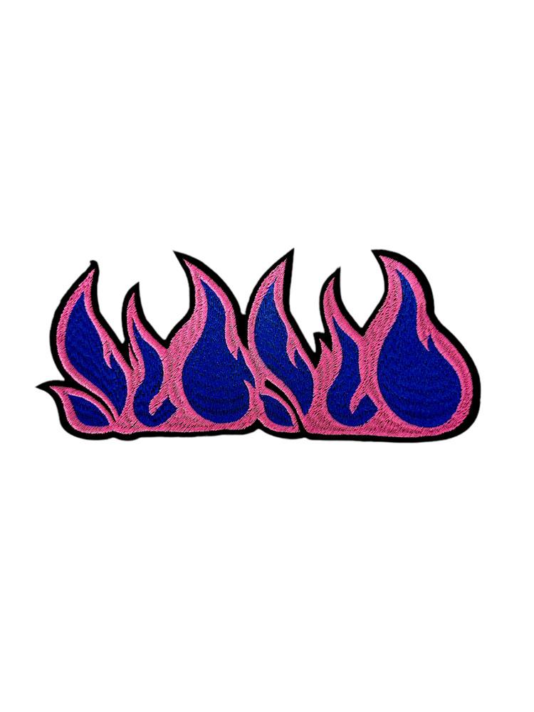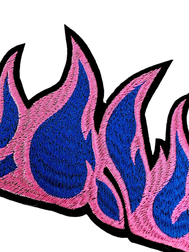 Embroidered Patch Featuring Stylized Flames in Pink and Deep Blue