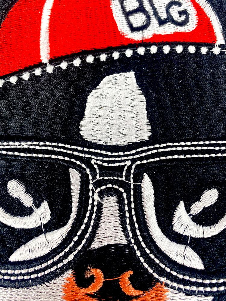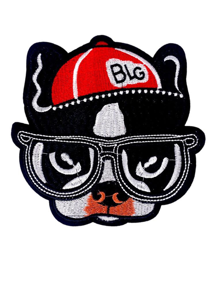 Embroidered Patch Featuring a French Bulldog in Glasses and a Red Cap