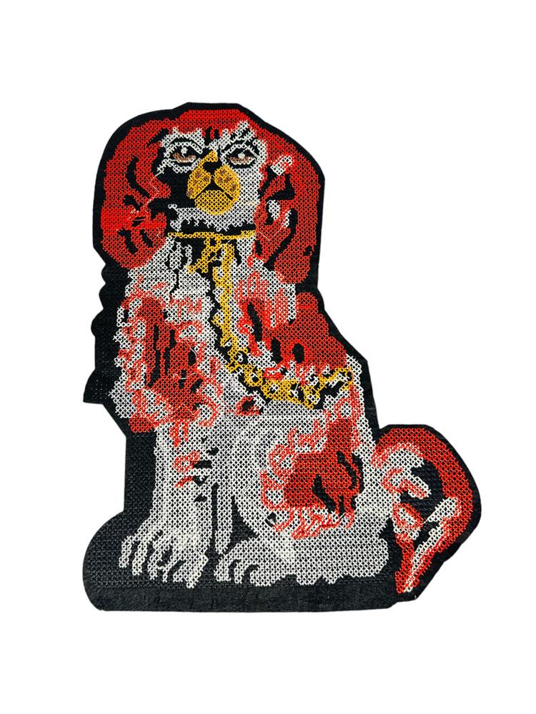 Meet the second half of a royal pair with the Porcelain Pup Patch II, a detailed embroidered nod to vintage ceramic dog statues. With rich red curls, crisp white fur, and a golden chain detail, this proud spaniel sits tall in traditional form—ready to bring elegance and heritage charm to any garment or accessory.