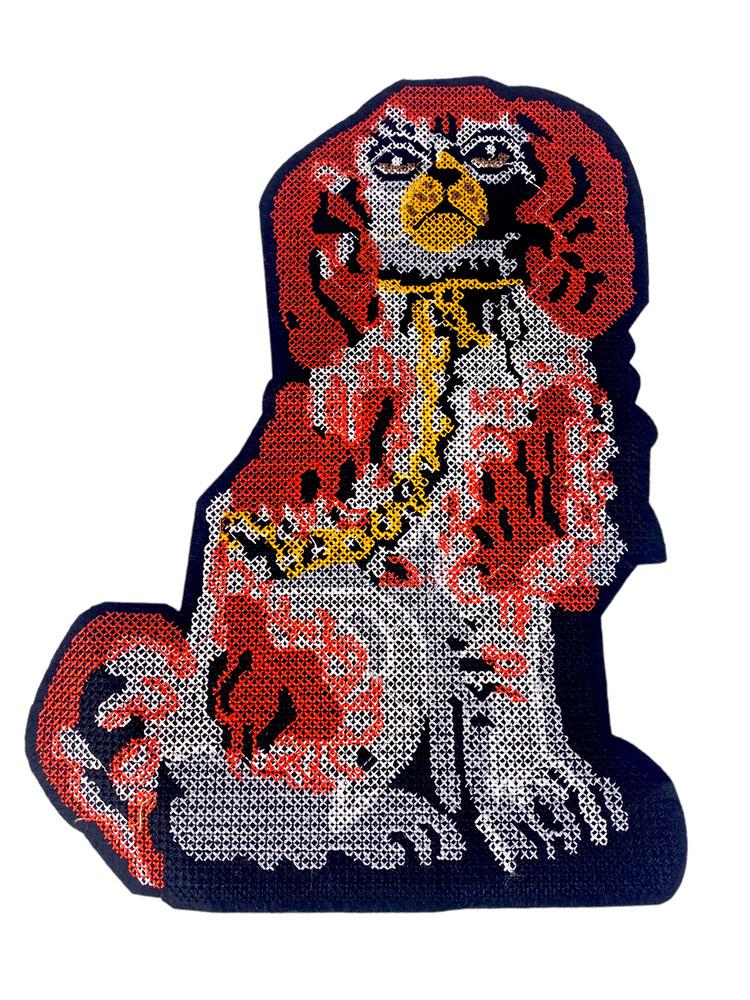Embroidered Patch Featuring a Classic Ceramic Spaniel Dog Motif