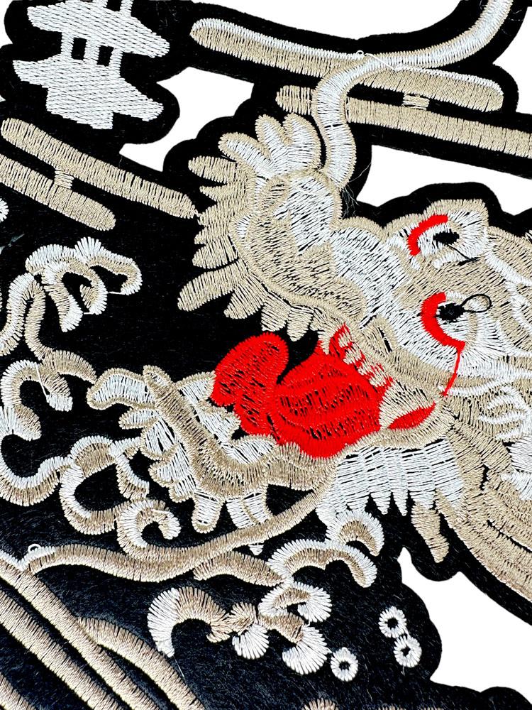 Embroidered Eastern-style dragon with dynamic pose and detail