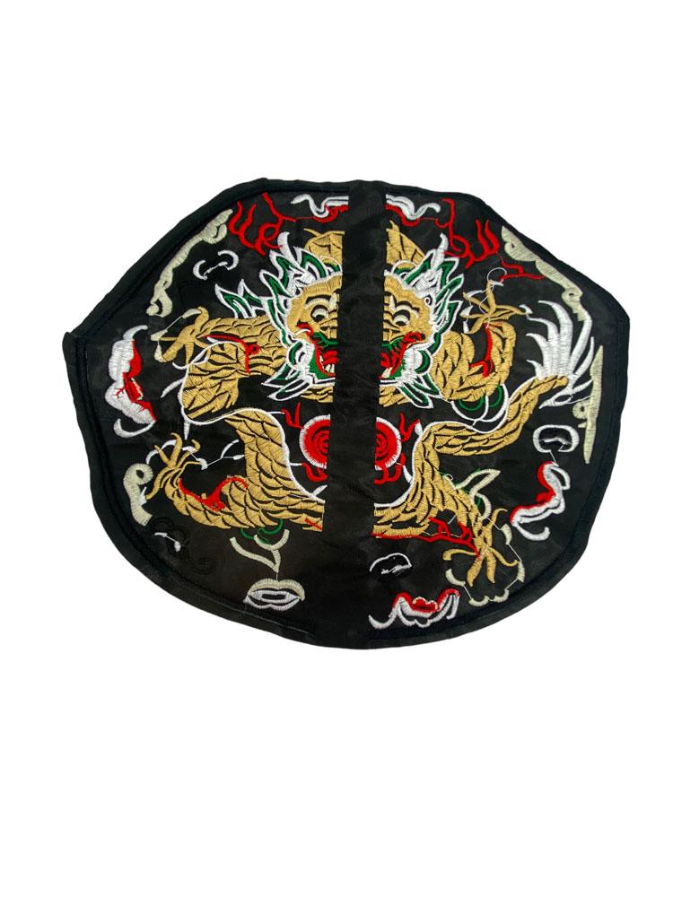 Embroidered Patch Featuring Twin Golden Dragons Around a Central Pearl