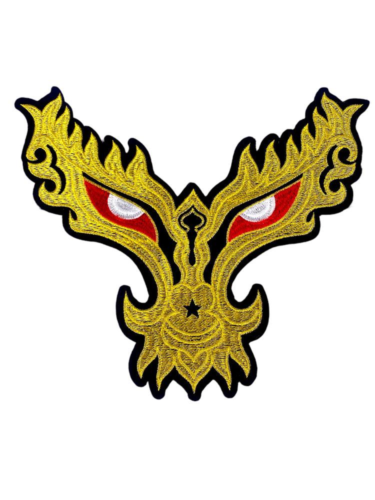 Command the room with the intense stare of the Golden Demon Eyes Patch, a bold and fiery embroidered emblem featuring piercing red-and-white eyes set in an ornate gold flame-like mask. With sharp edges, dramatic contrast, and intricate linework, this patch channels fierce protection, mysticism, and mythological power.