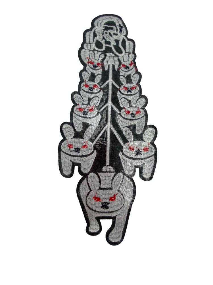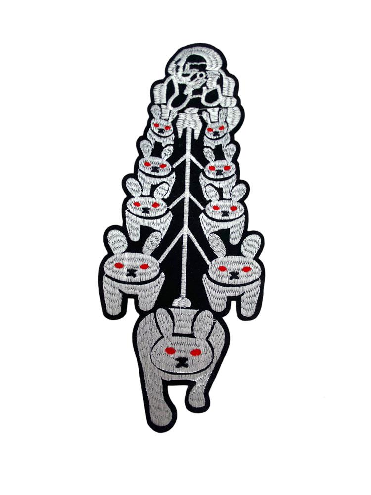 Step into the uncanny with the Rabbit Pack Patch, a bold embroidered design that turns repetition into rebellion. Featuring a stacked, symmetrical formation of gray rabbits with red eyes and blank expressions, this surreal patch makes a statement that's equal parts eerie and iconic. A perfect pick for lovers of pop surrealism, streetwear edge, or avant-garde flair.