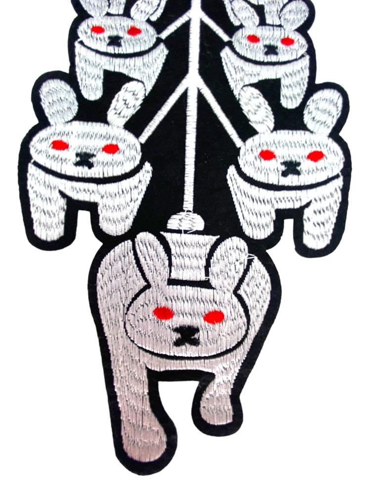Embroidered Patch Featuring a Repeating Line of Stylized Gray Rabbits with Red Eyes