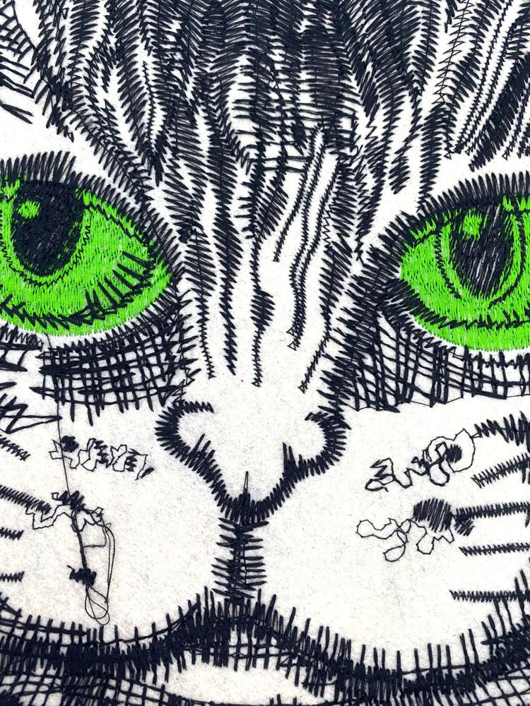 Bright green embroidered eyes for vivid contrast