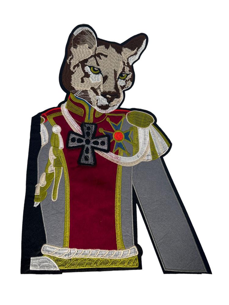 Embroidered Patch Featuring a Regal Cat in Full Dress Uniform
