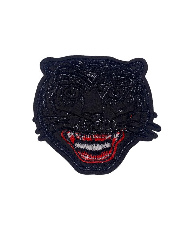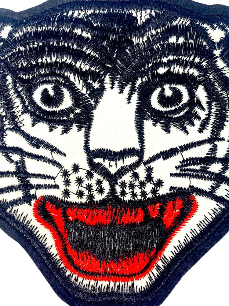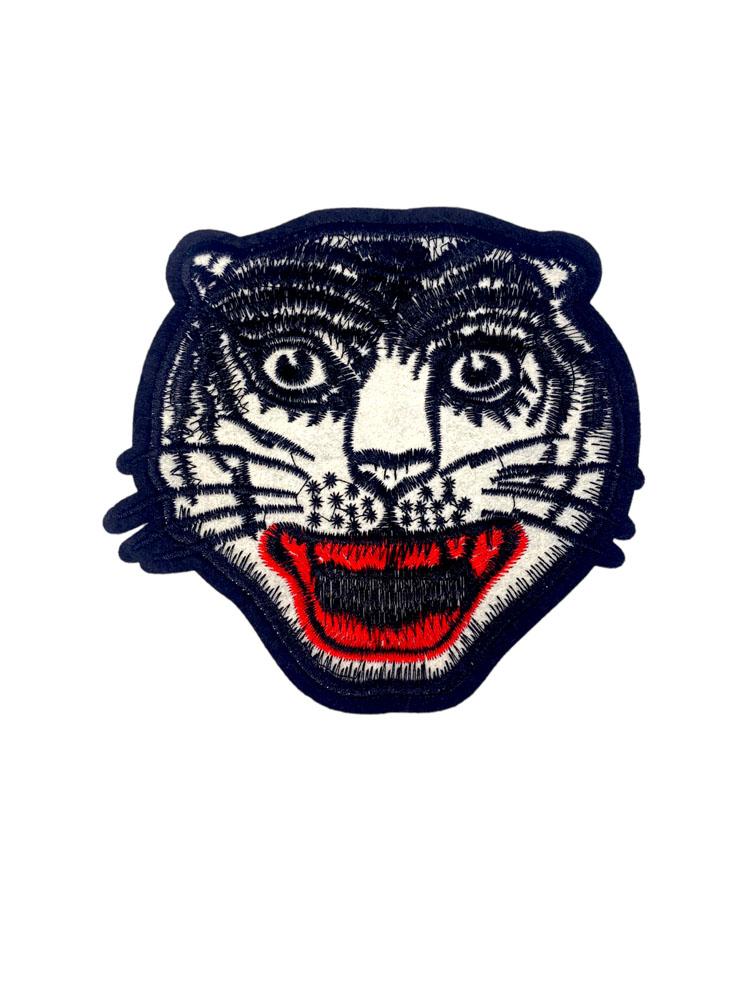 Embroidered Patch Featuring a Stylized Black and White Tiger Head
