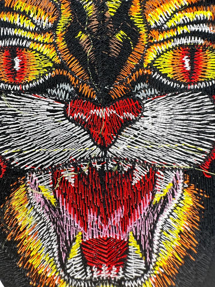 Unleash full-throttle ferocity with the Inferno Wildcat Patch, a vividly embroidered design featuring a roaring wildcat with flame-like fur and blazing red eyes. With its bold color palette, exaggerated expression, and striking symmetry, this patch is made to dominate denim, jackets, and gear with raw, animalistic power.